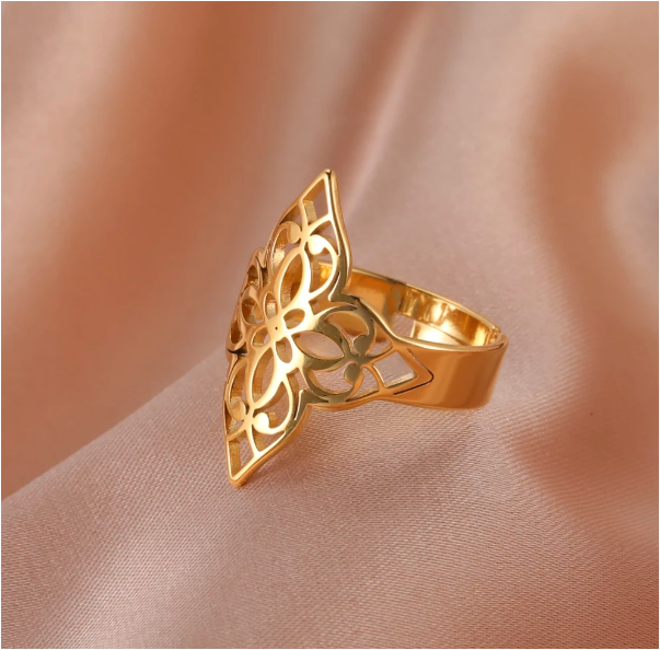 ****** 1 Anillo Nudo de Bruja M1 Grande Ajustable Acero Color Dorado Poderosísimo Simbolo de Proteccion de ACERO CURADO USO RUDO *****