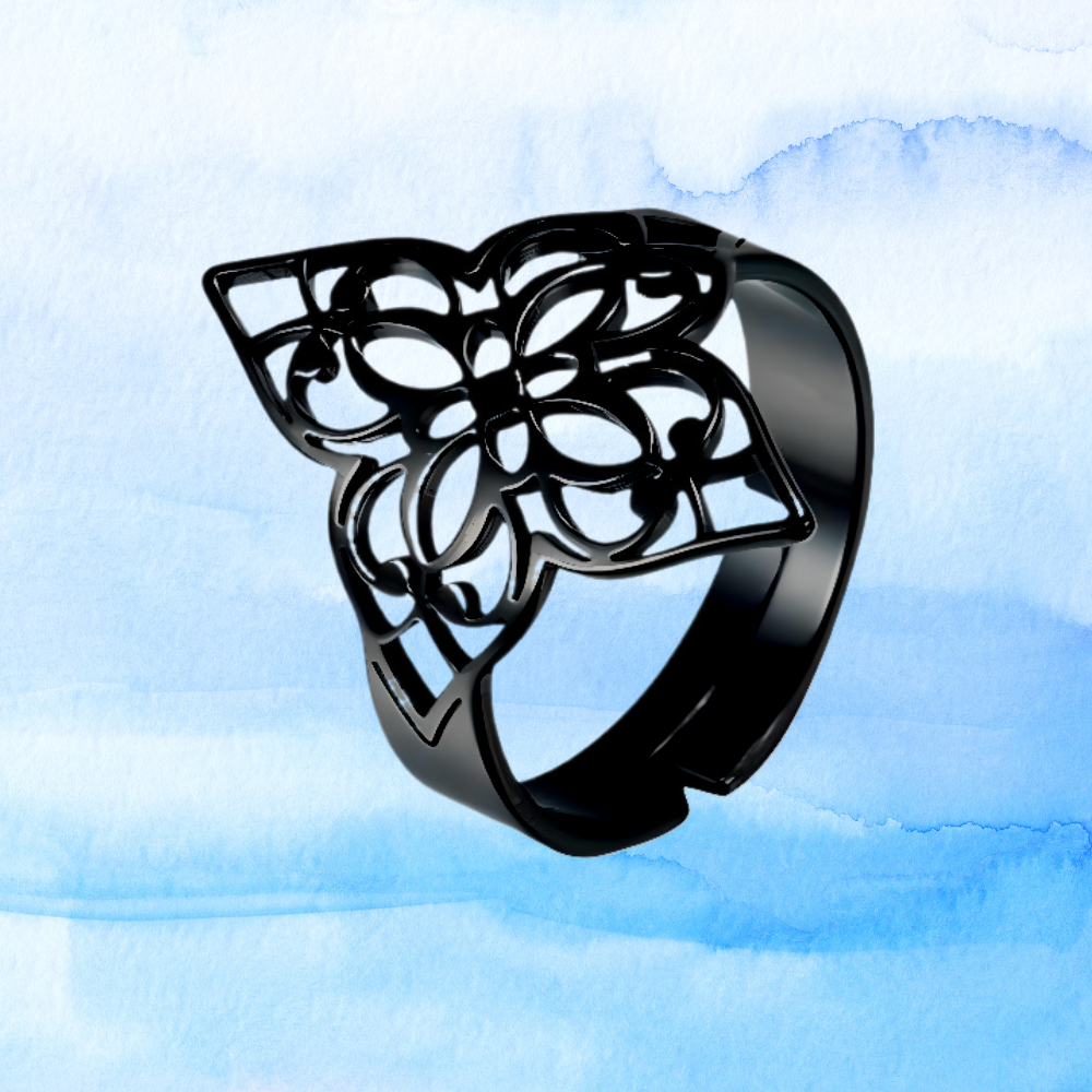 ****** 1 Anillo Nudo de Bruja M1 Grande Ajustable Acero Color Negro Poderosísimo Simbolo de Proteccion de ACERO CURADO USO RUDO *****