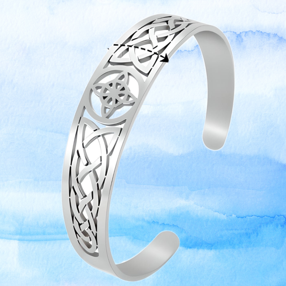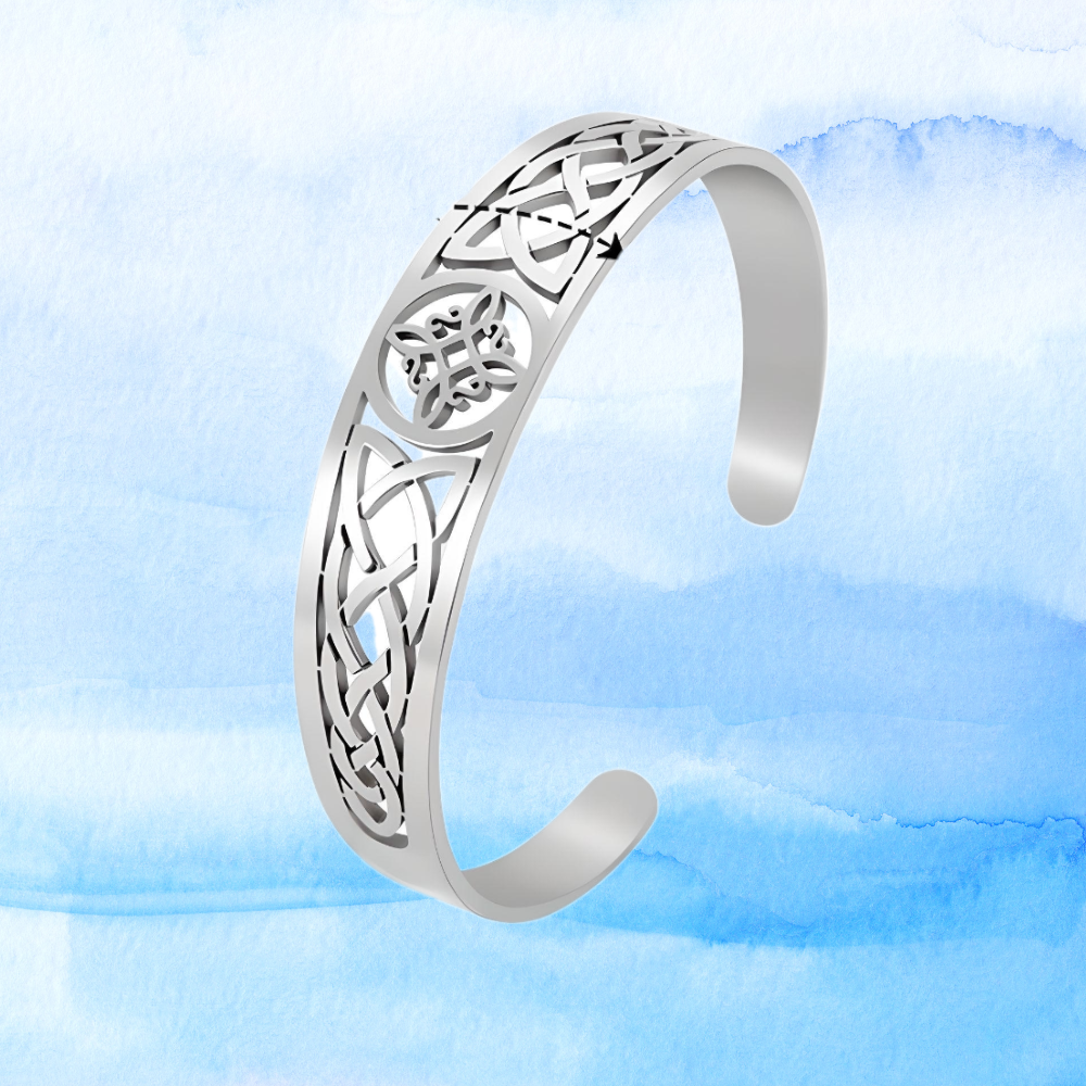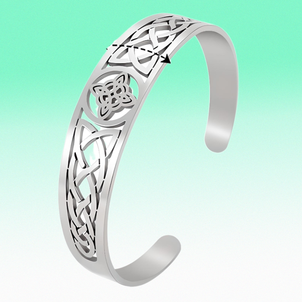 ******1 Brazalete CURADO Ajustable de ACERO Nudo de Bruja F Color Plata Espesor de 2 mm Alta Durabilidad para Uso Rudo Para Muñecas desde 17 cm hasta 25 cm de Perimetro