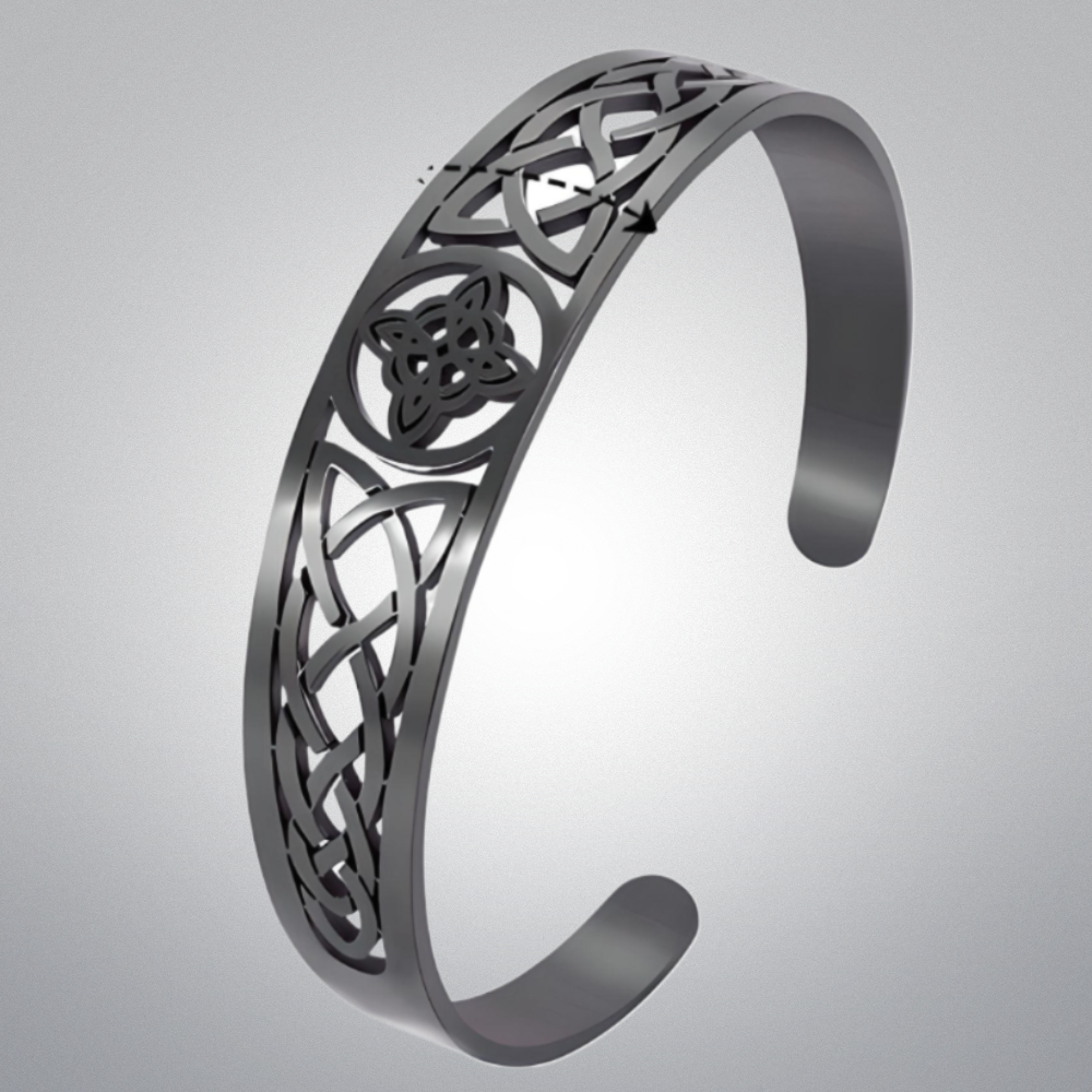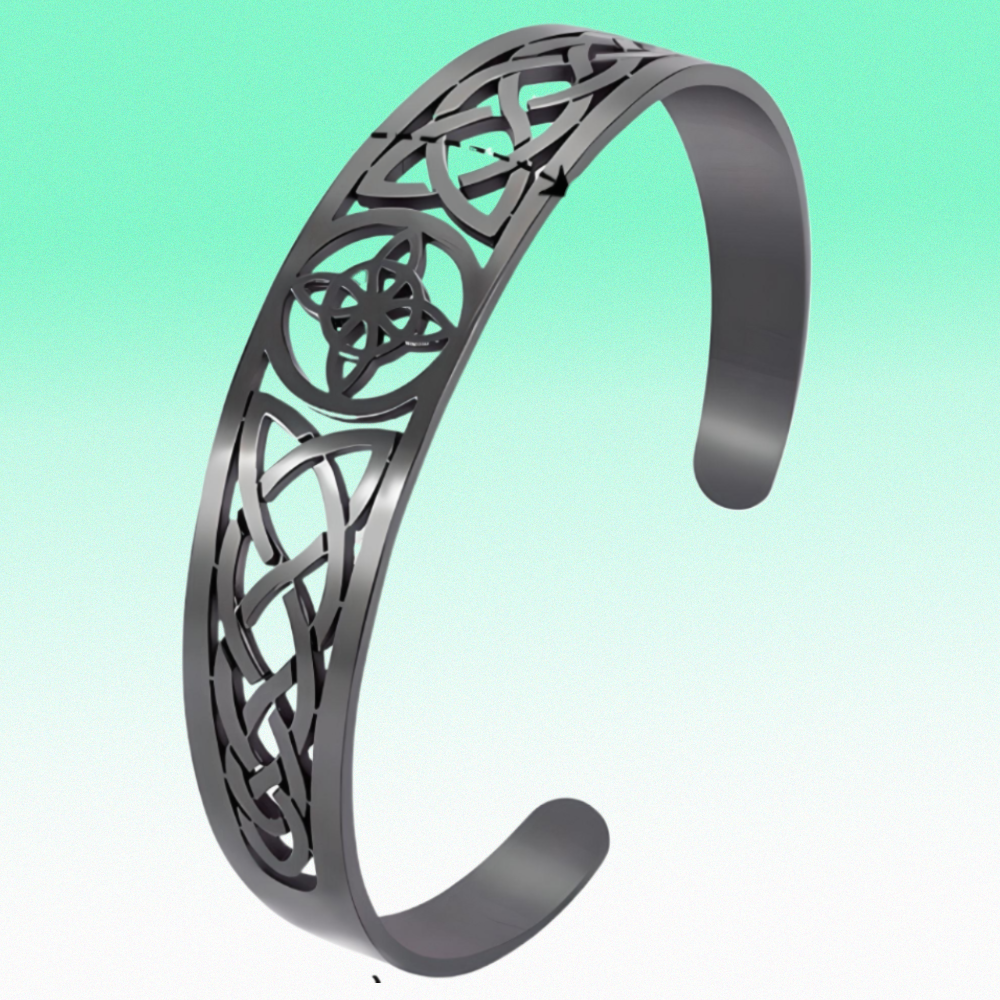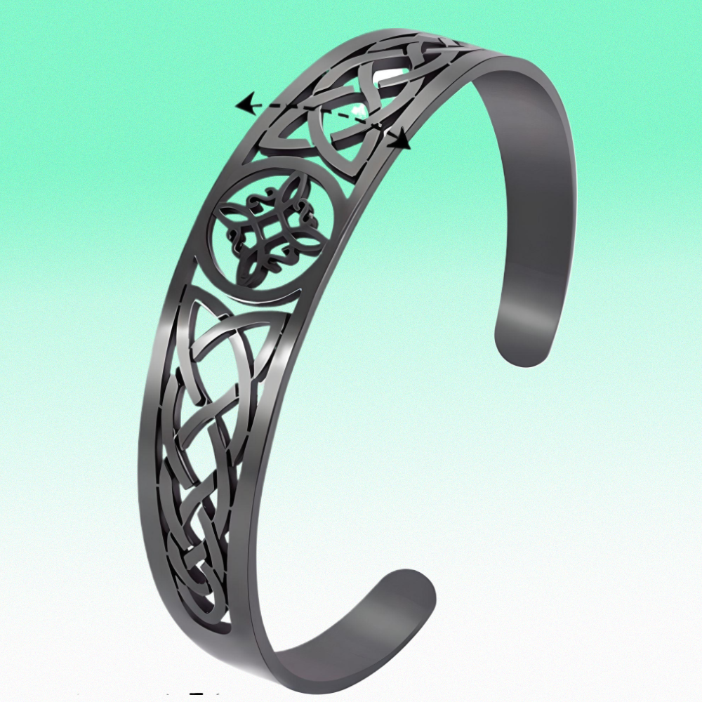 ******1 Brazalete CURADO Ajustable de ACERO Nudo de Bruja F Color Negro Espesor de 2 mm Alta Durabilidad para Uso Rudo Para Muñecas desde 17 cm hasta 25 cm de Perimetro