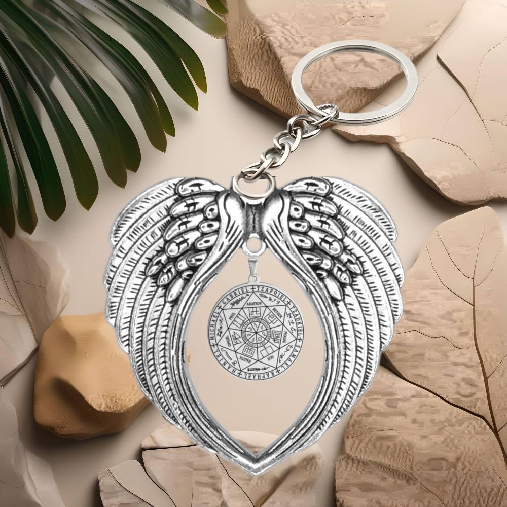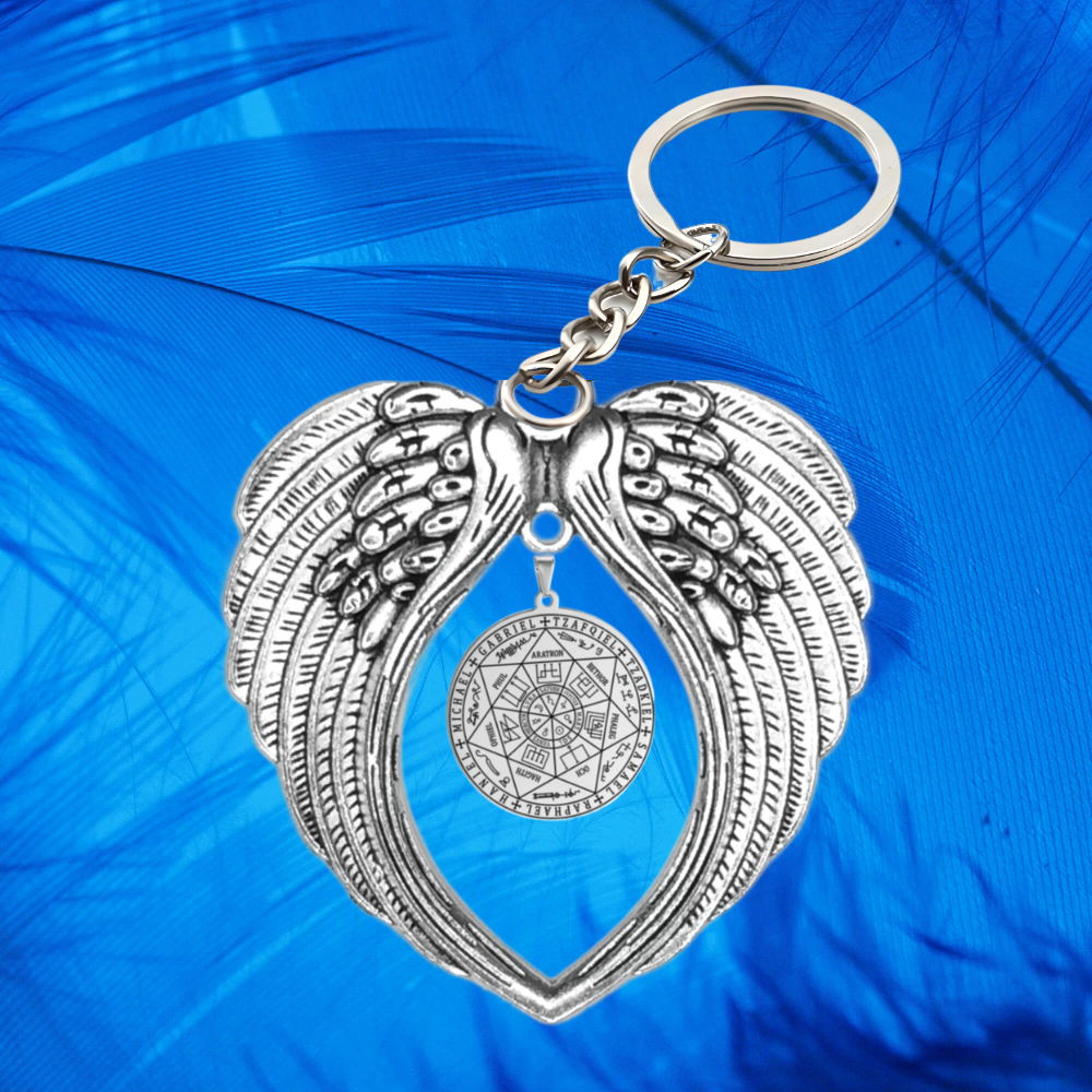 ******1 Dije 7 Arcangeles 35x35mm ACERO INOXIDABLE Color Plata de Uso Rudo en Alas de Angel 80X60cmm EN LLAVERO el Más PODEROSO SIMBOLO DE PROTECCION CURADO/Activado USO RUDO Alta Duracion.