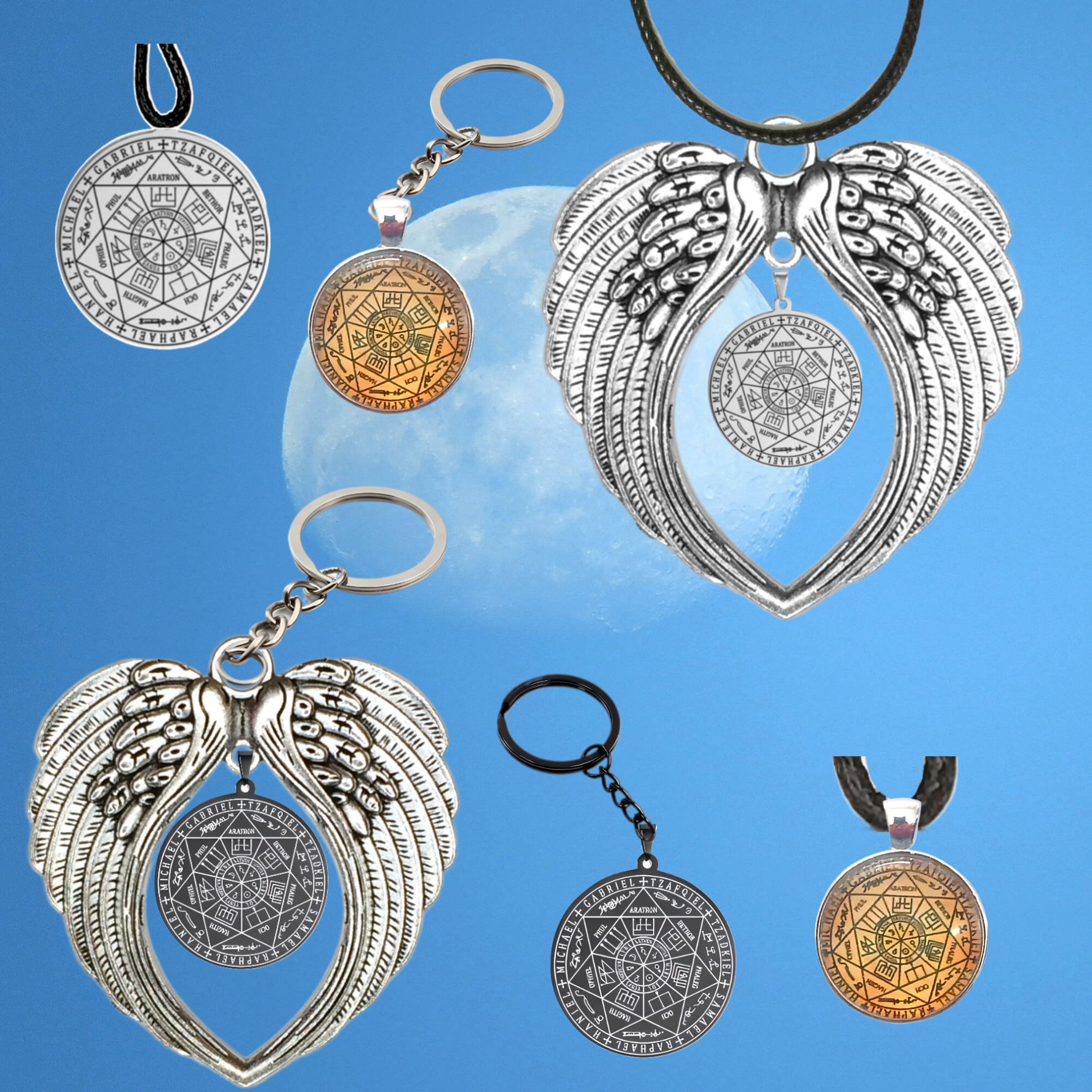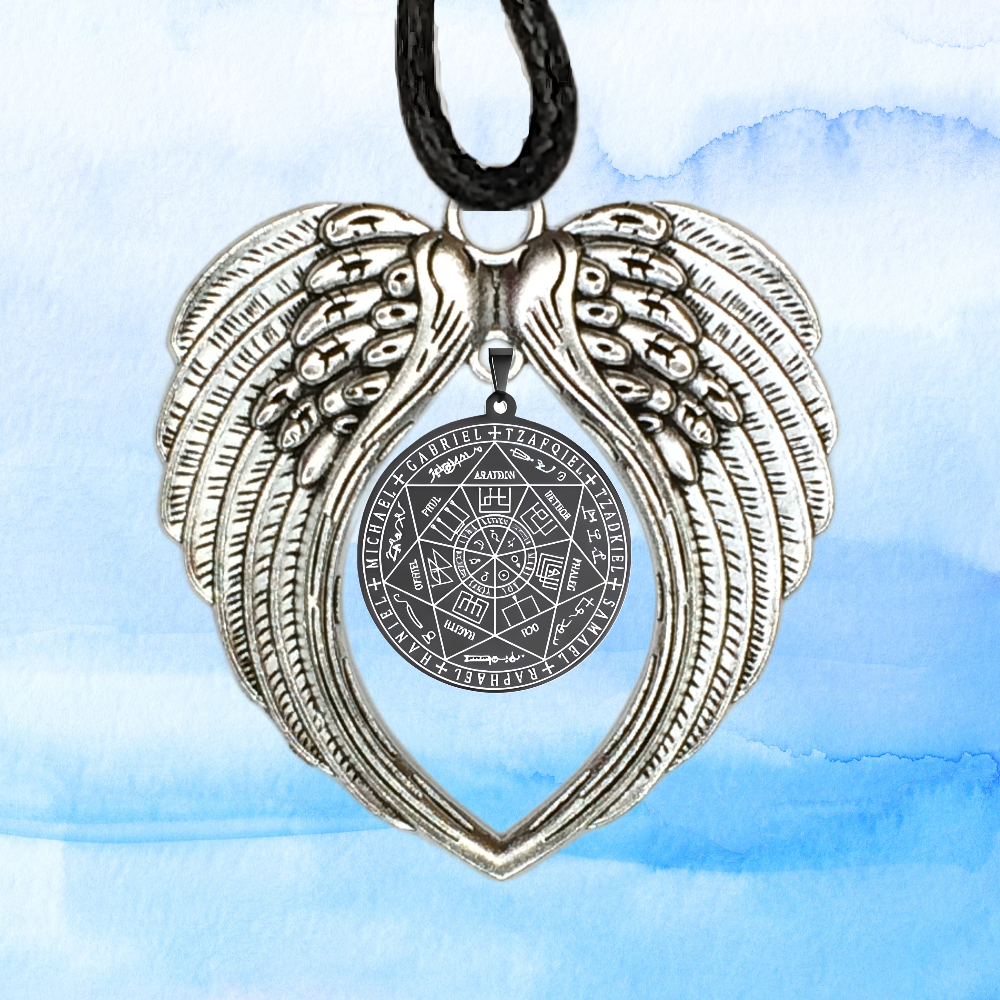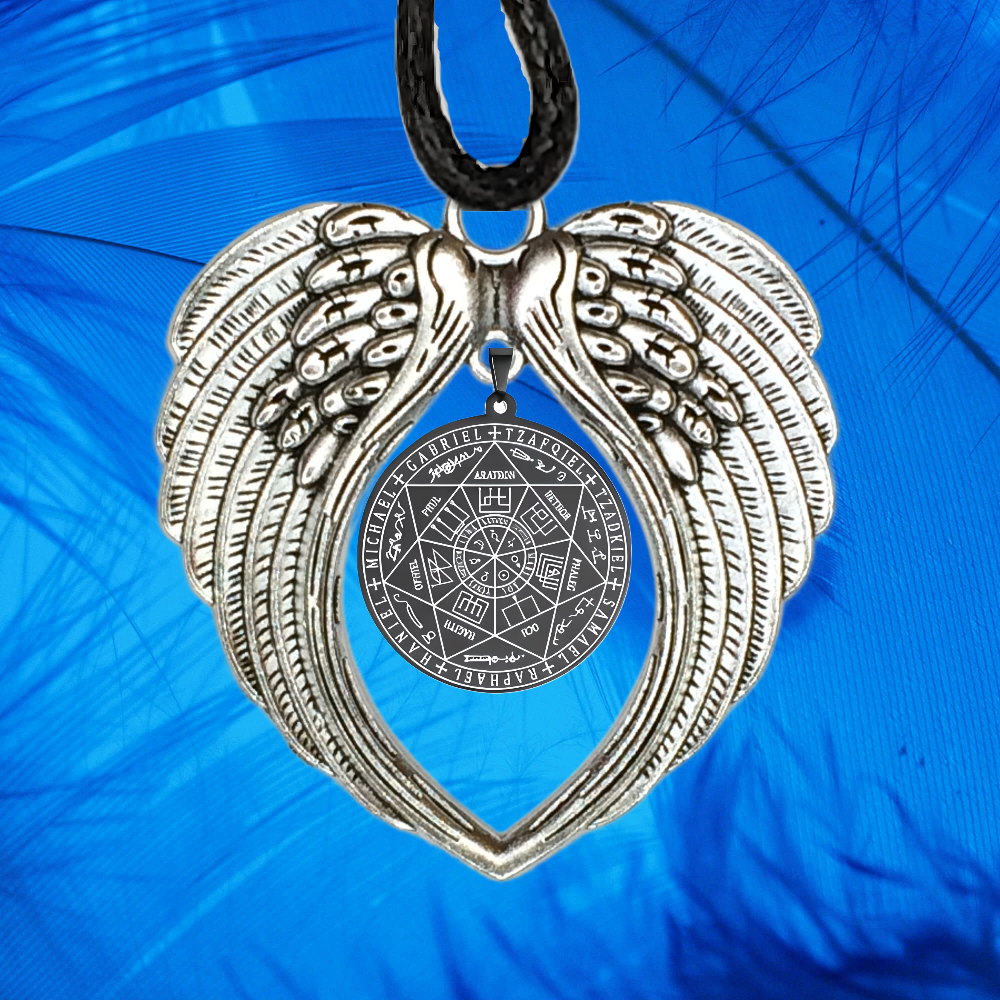 ******1 Dije 7 Arcangeles 35x35mm ACERO INOXIDABLE Color Negro de Uso Rudo en Alas de Angel 80X60cmm EN LLAVERO el Más PODEROSO SIMBOLO DE PROTECCION CURADO/Activado USO RUDO Alta Duracion.