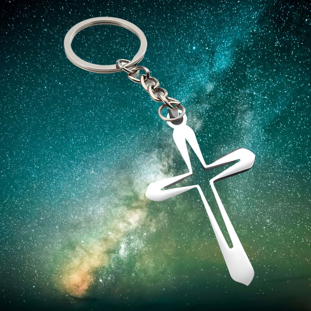 1 Dije en Llavero de Cruz Para Recibir Justicia Divina Activada 45x25mm ACERO INOXIDABLE ALTA DURABILIDAD