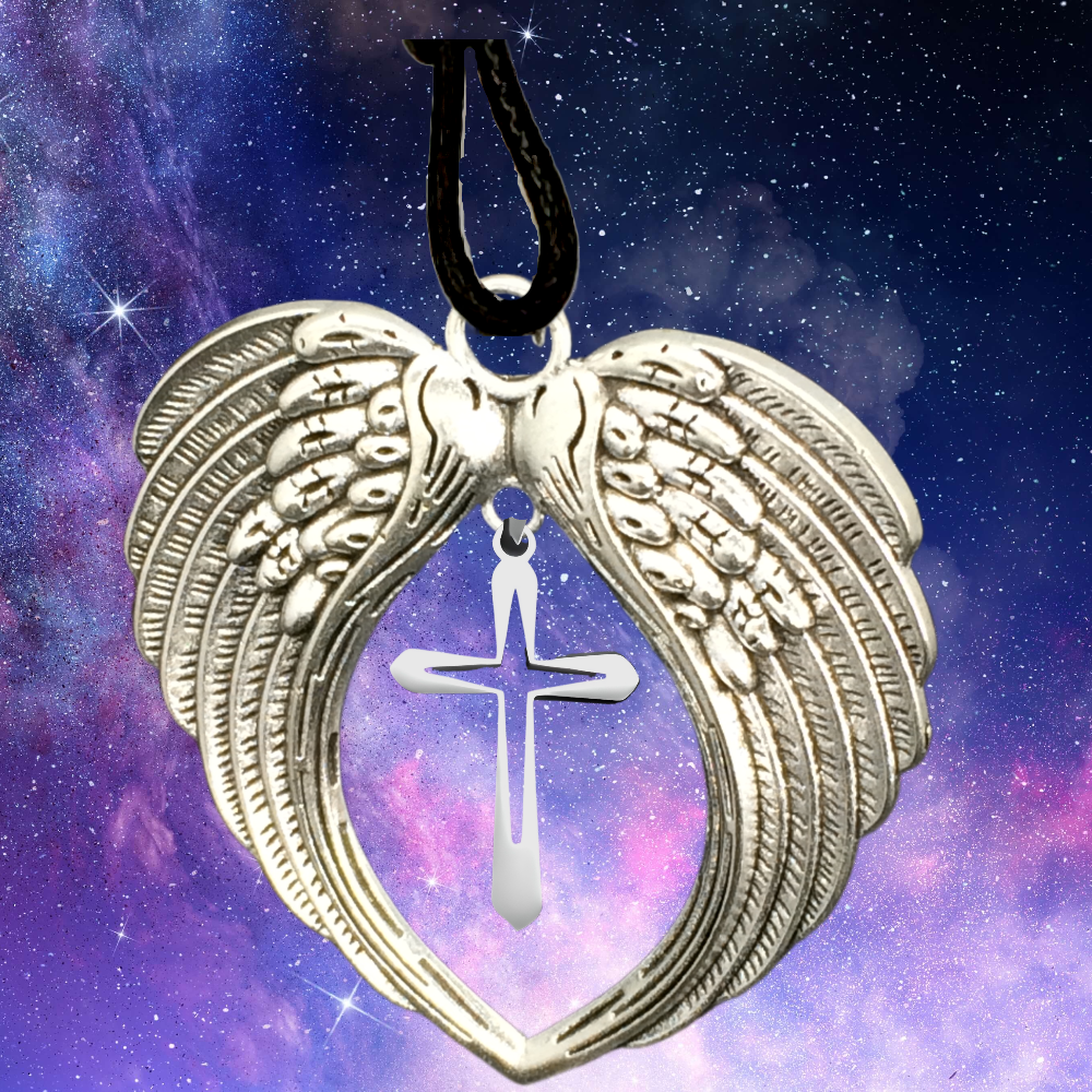 1 Dije en Collar de Cruz Para Recibir Justicia Divina Activada 45x25mm ACERO INOXIDABLE En Alas de Angel 80x60mm ALTA DURABILIDAD