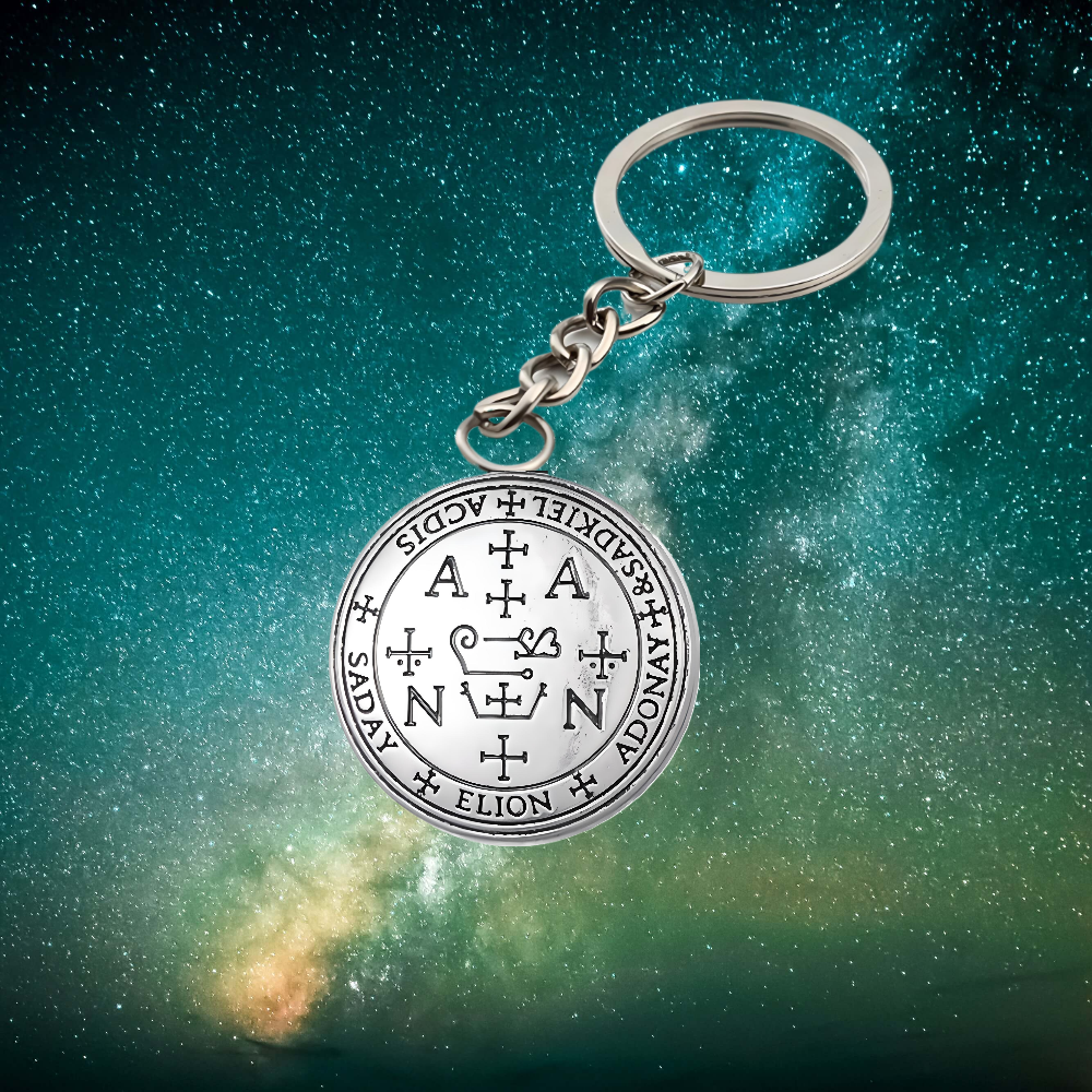 *** 1 Llavero con 1 DIJE Curado Intencionado TIPO ANTIGUO ARCANGEL SADKIEL 30X30MM ALTA DURABILIDAD SU VENTA ES INDIVIDUAL