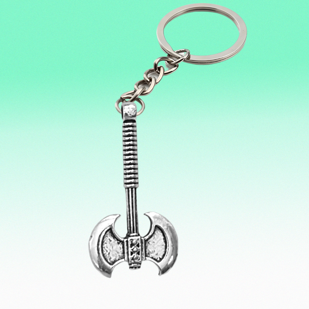 1 Hacha Doble Medioeval Mediana C.Plata  40X20MM cOLOR pLATEADO  en Llavero