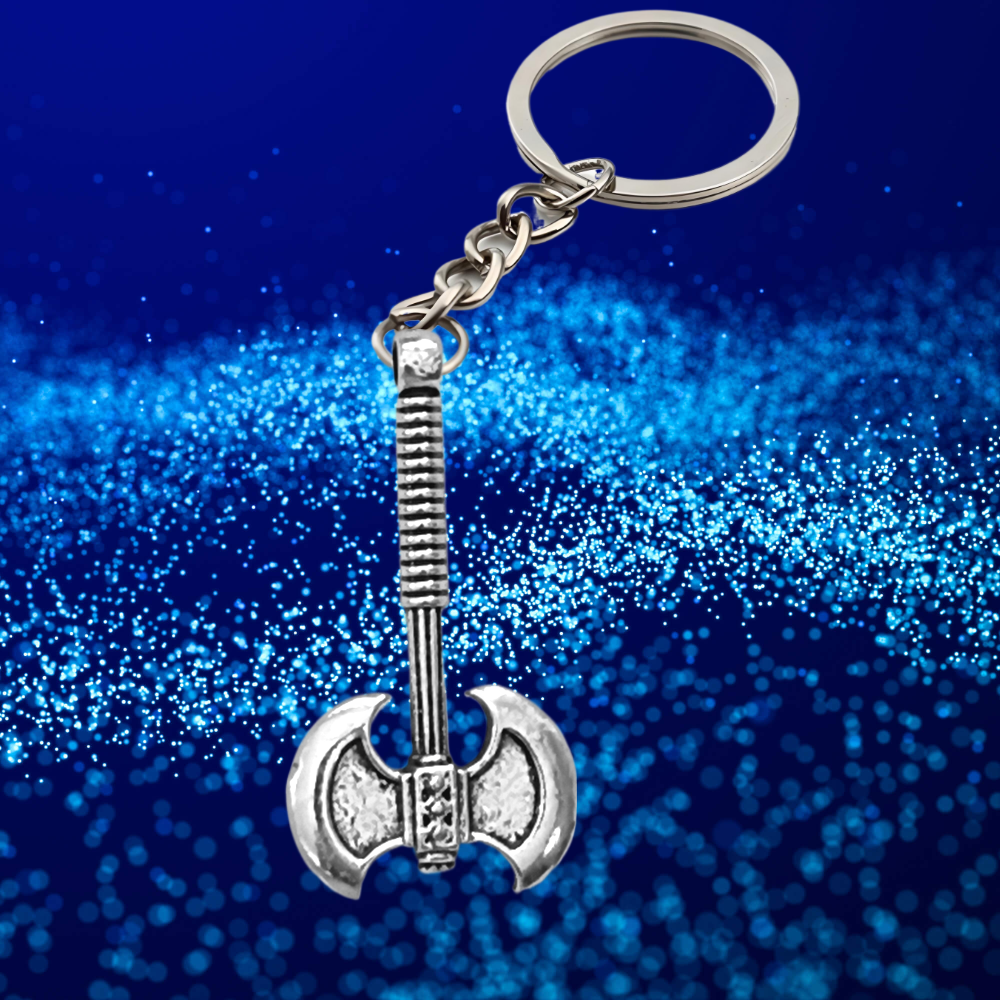 1 Hacha Doble Medioeval Mediana C.Plata en Llavero Poderosisimo Talisman Protector (DIJE Curado e Intensionado), Alta Durabilidad-CUPF&=