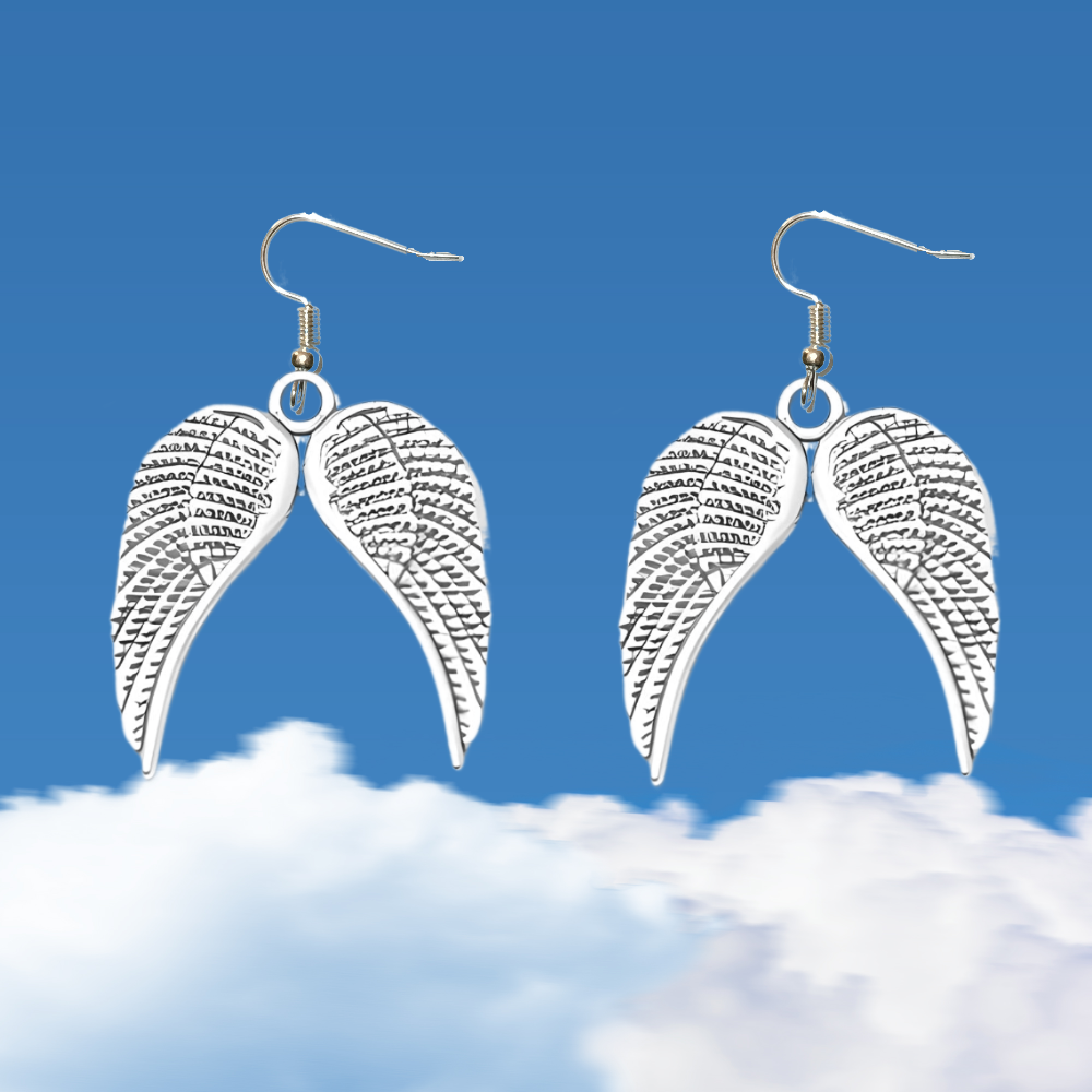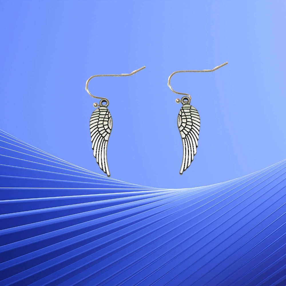 1 Par de Aretes Con Alas de Angel Chicas Ranuradas Color plata 11X4mm
