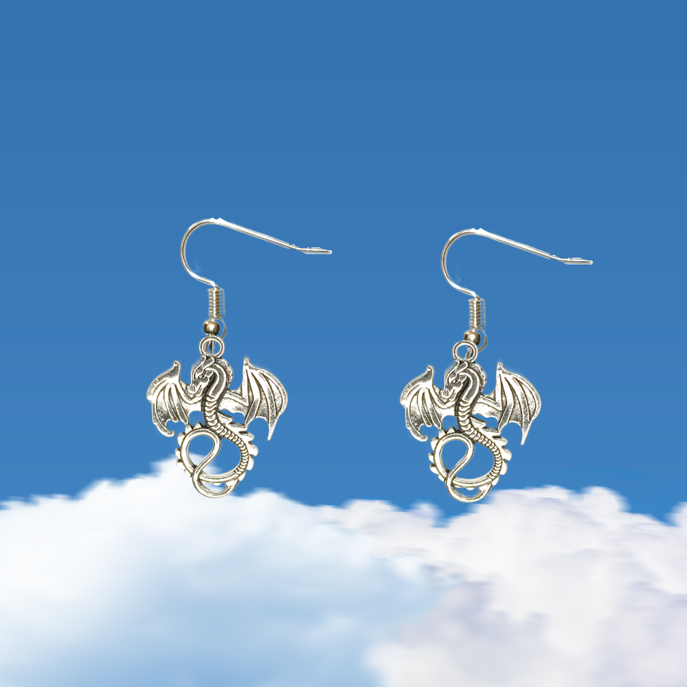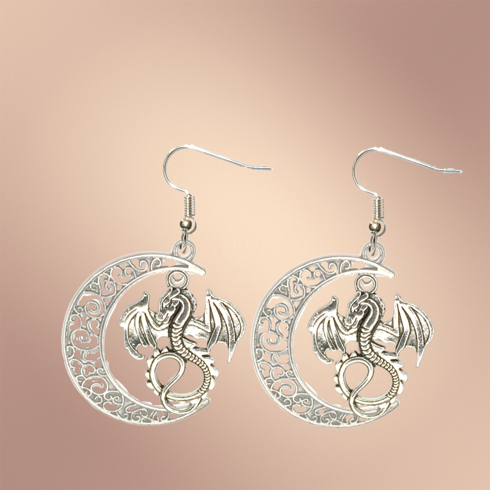 2 Dijes Dragon Vikingo Grande Color Plat 30x30mm en Luna Color Plat de Alta Durabilidad En Aretes