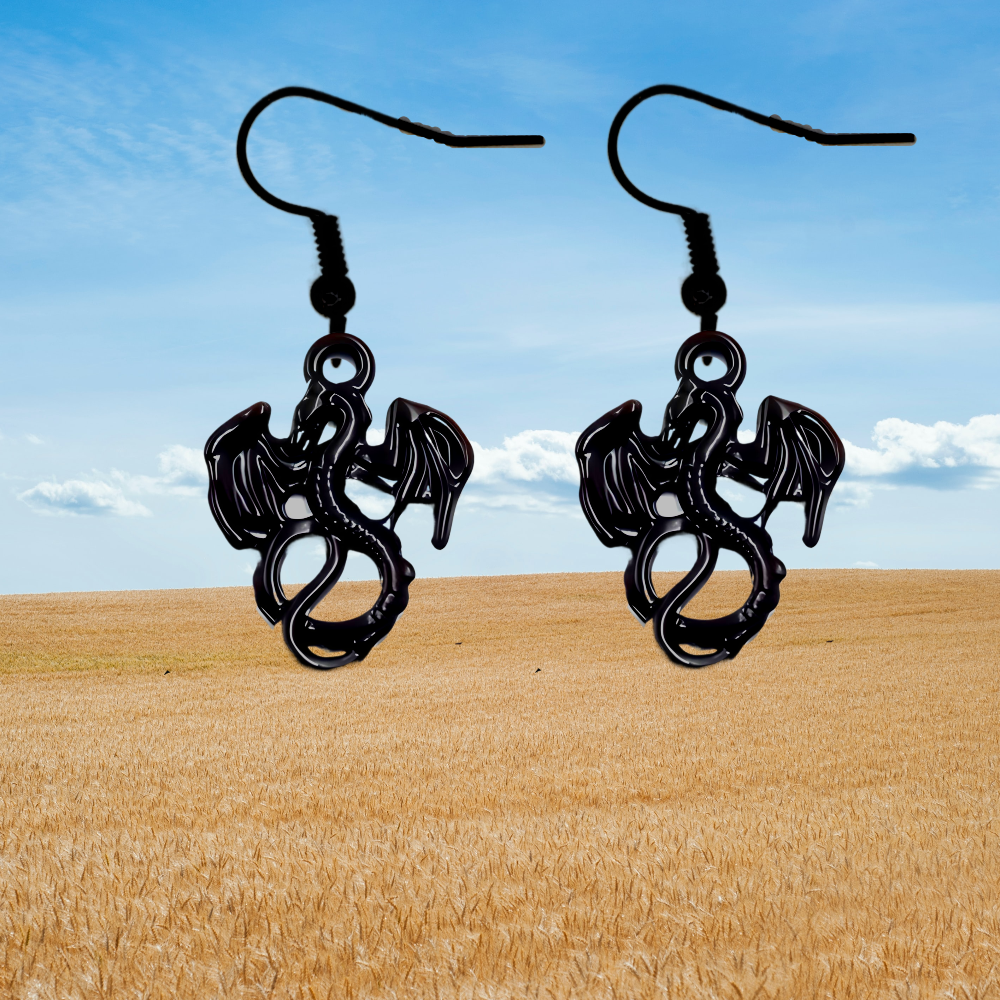 2 Dijes Dragon Vikingo Grande Color Negr 30x30mm de Alta Durabilidad En Aretes