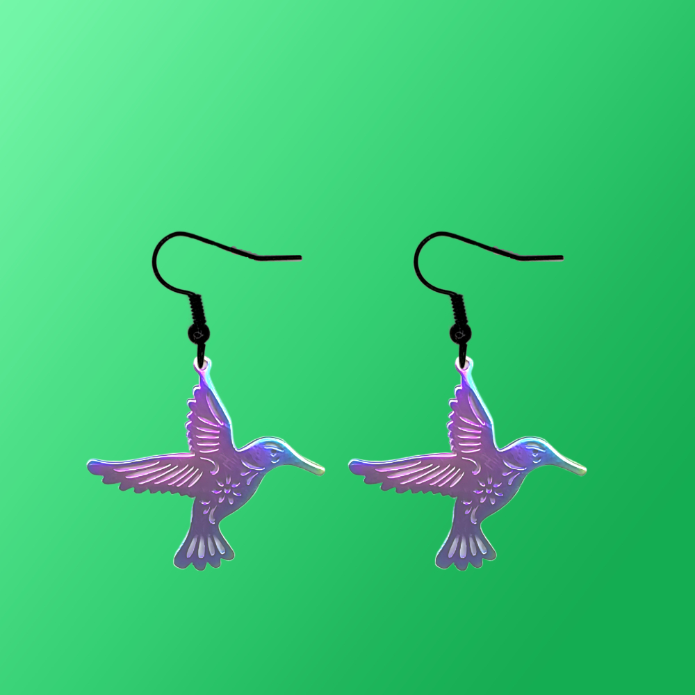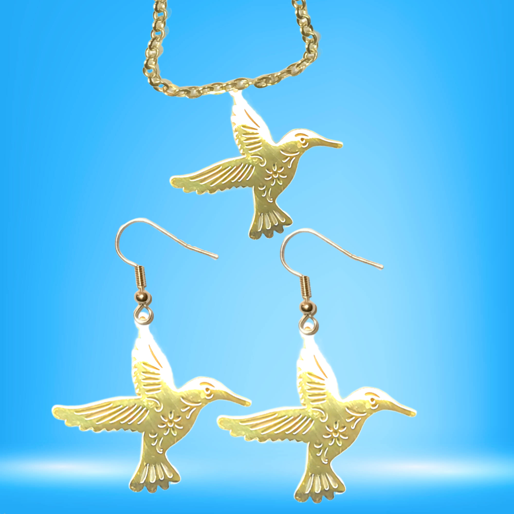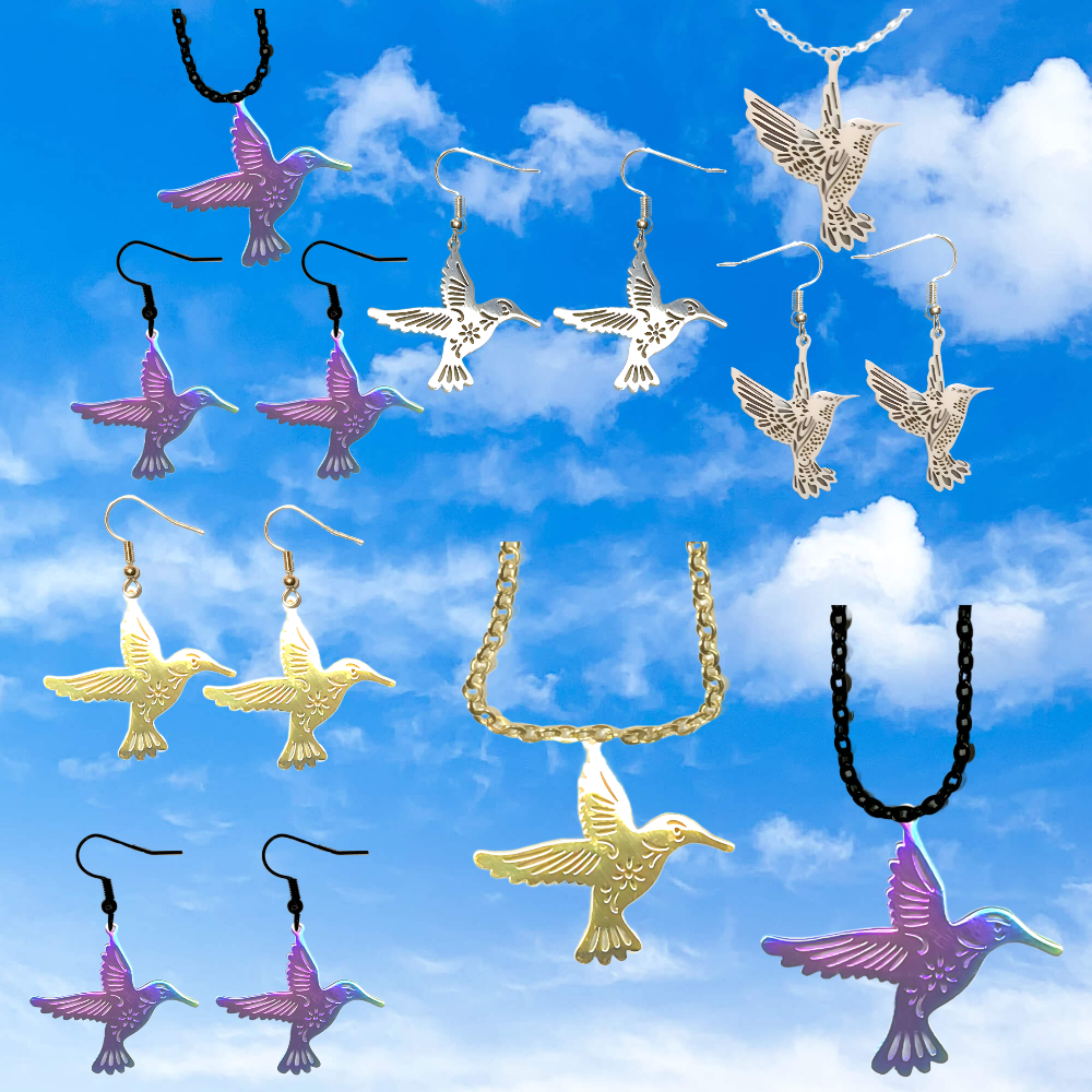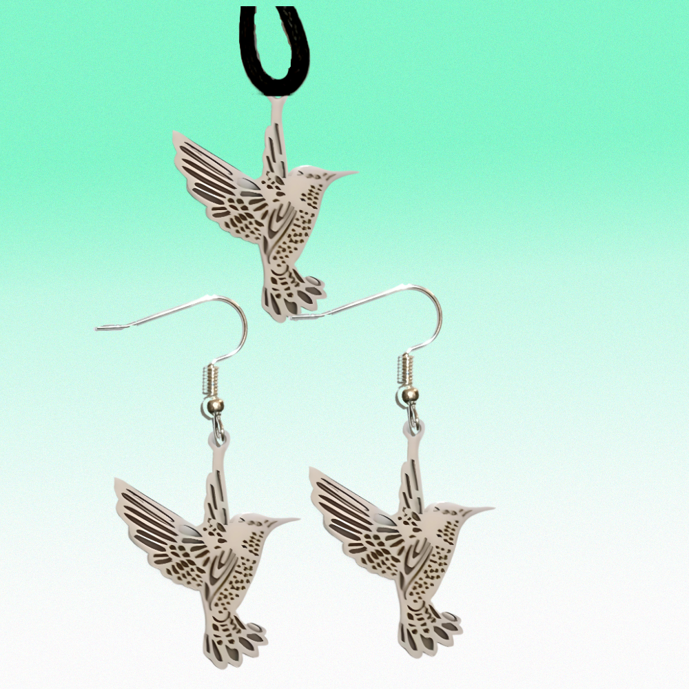 Hermoso Dije Colibri Grande Acero Inoxidable en Aretes, Dije/Collar o Juego Alta Durabilidad+ 9 Modelos a Escoger X1col