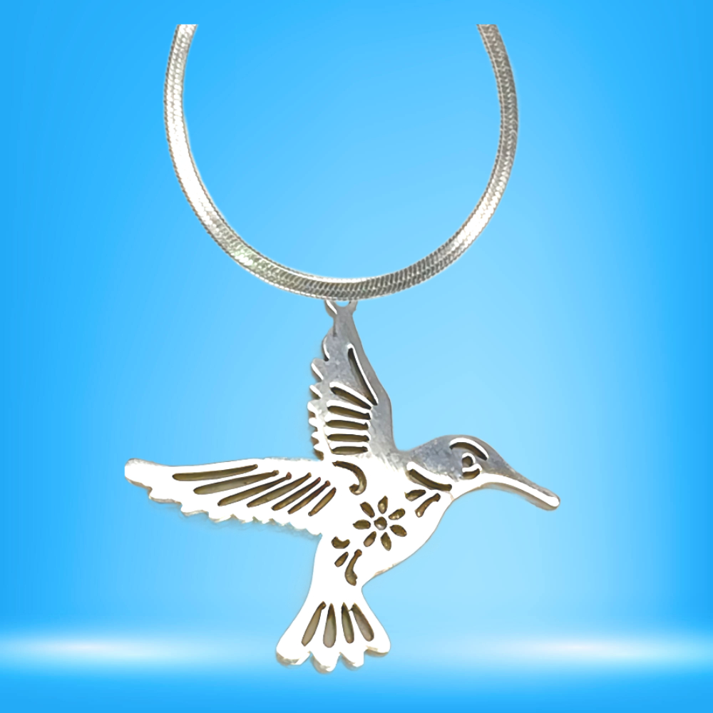 ******1 Collar con un Hermoso Dije de Colibri Detallado Grande M3 40x35mm Acero Color Plata Acero Alta Durabilidad