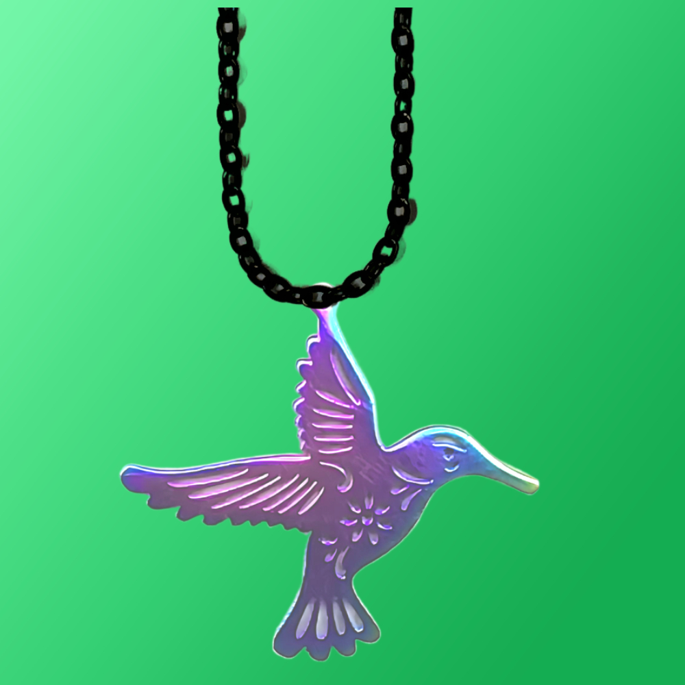 ******1 Collar con un Hermoso Dije de Colibri Con Flores en Pecho Grande M2 40x35mm Acero Color Tornasol Acero Alta Durabilidad
