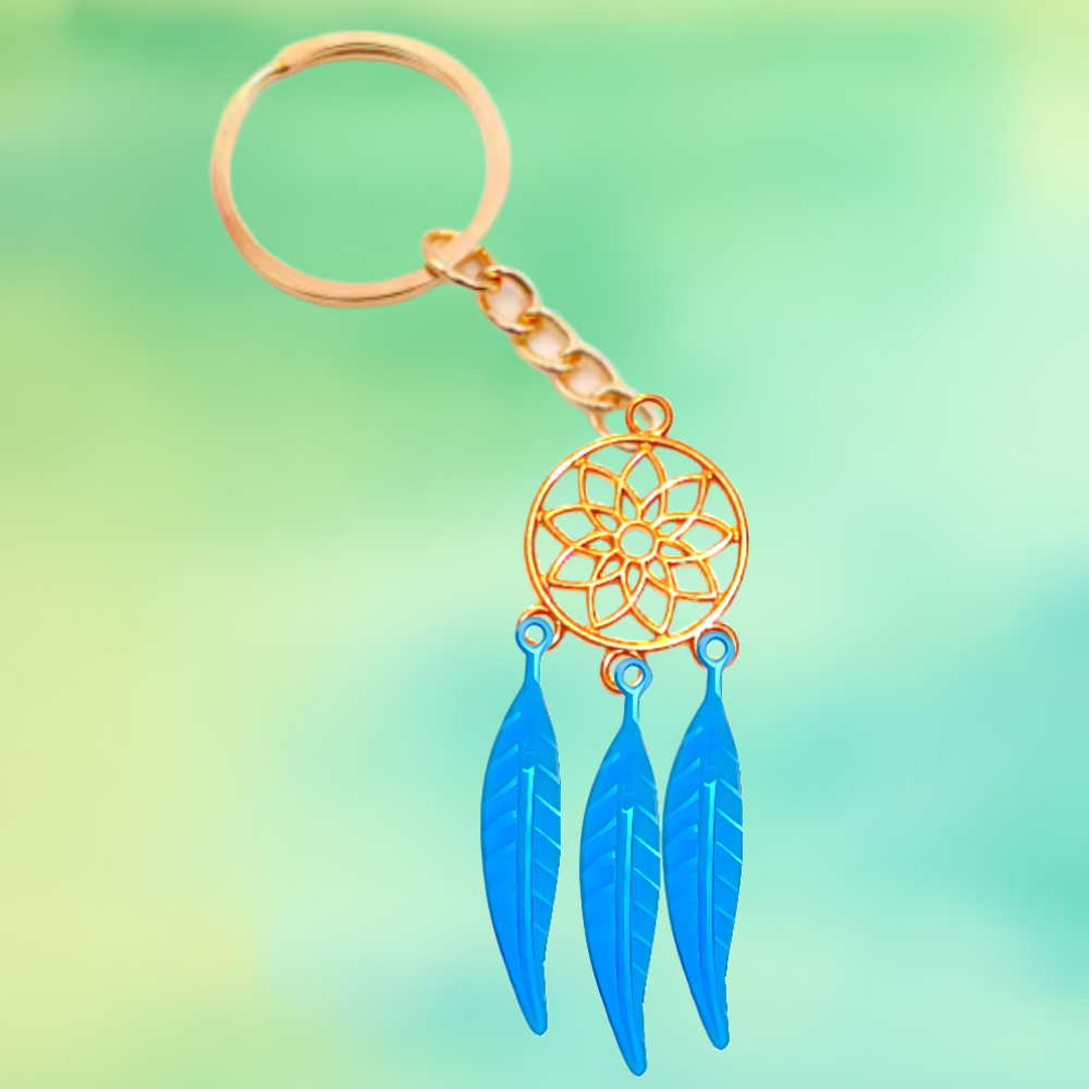 ******1 Par de Atrapasueños 30x15mm Color Dorado + Plumas Acero Color Azul en Llavero Dorado Acero 12x1mm Acero Alta Durabilidad *****