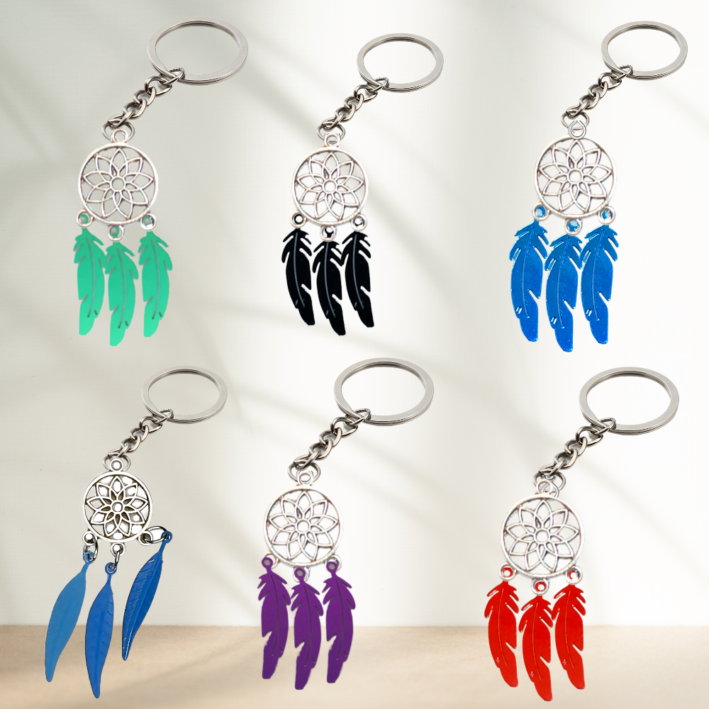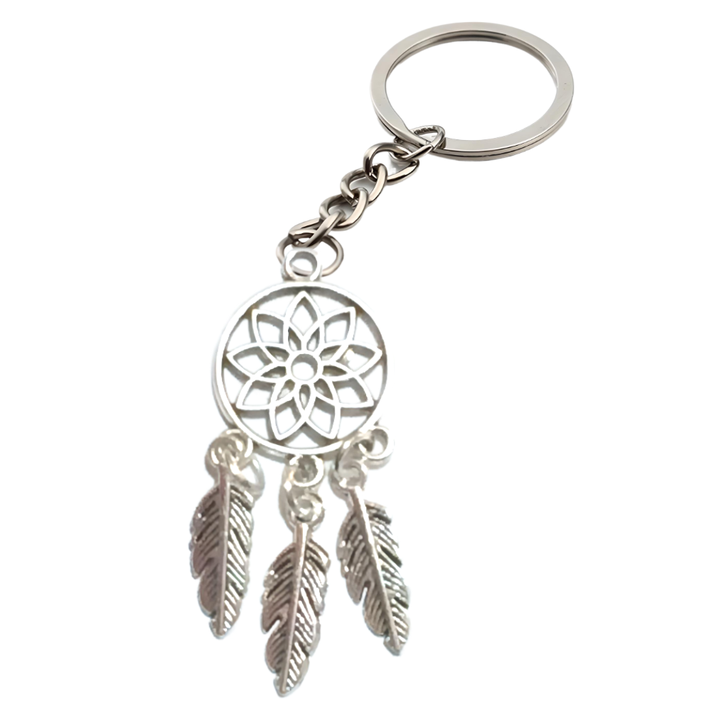 ******1 Par de Atrapasueños 30x15mm Color Plata + Plumitas Chicas Color Plata en Llavero Plata Acero 12x1mm Acero Alta Durabilidad *****