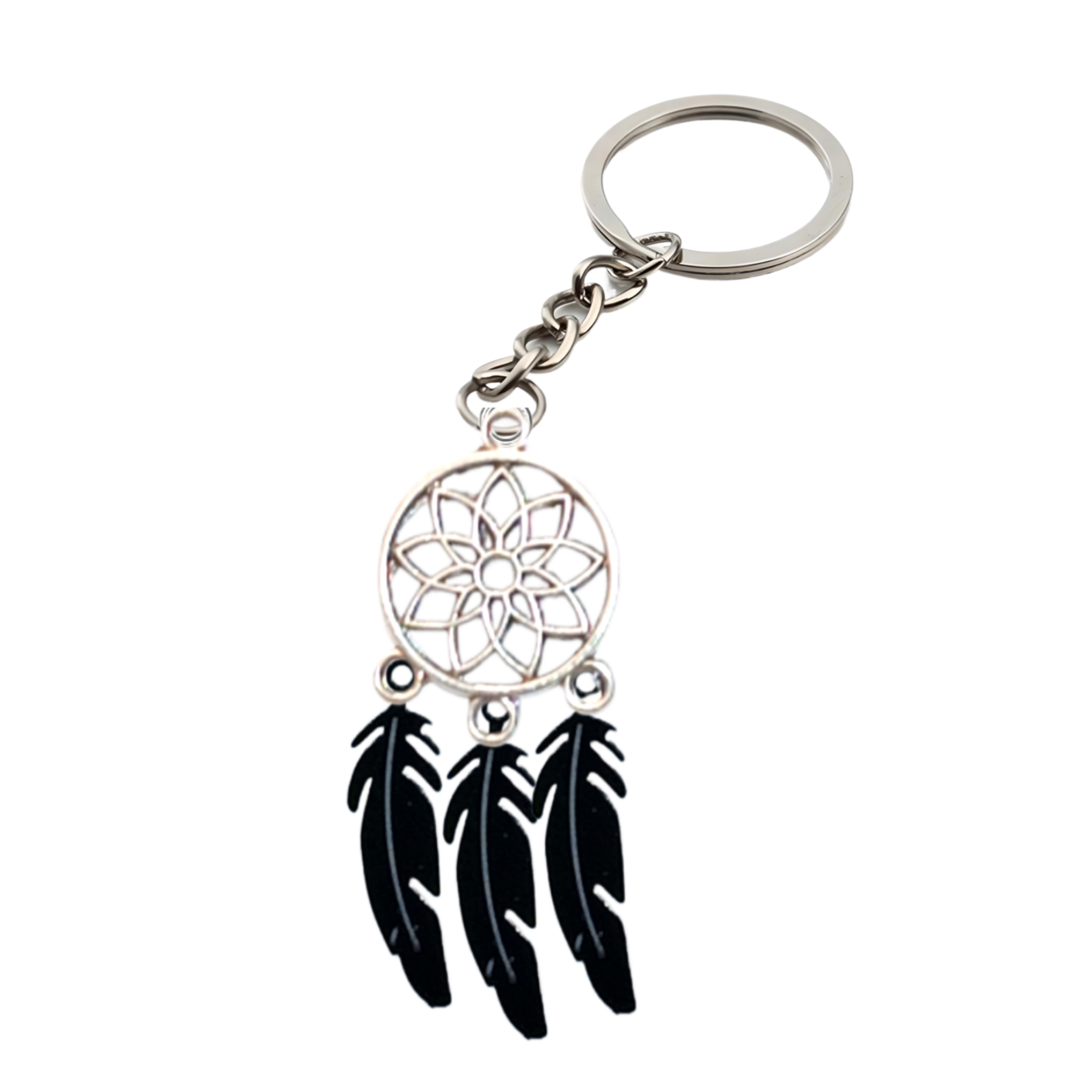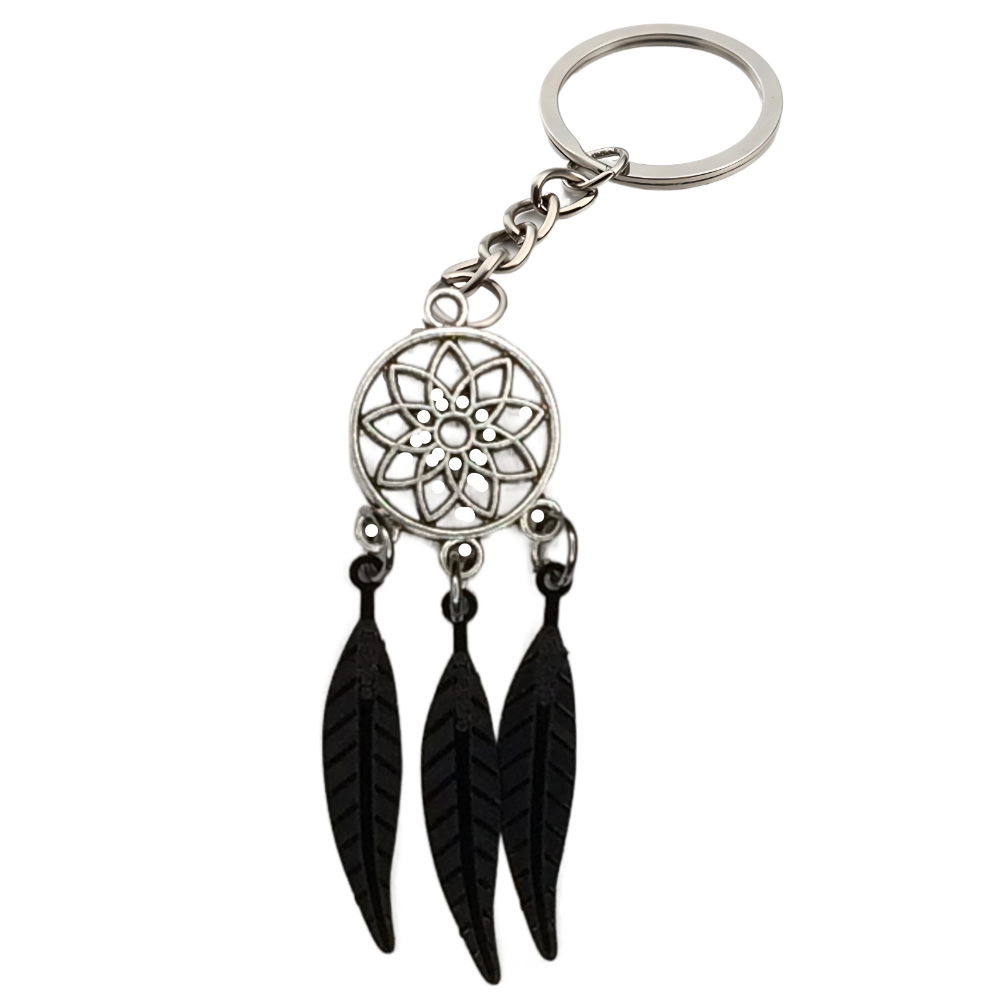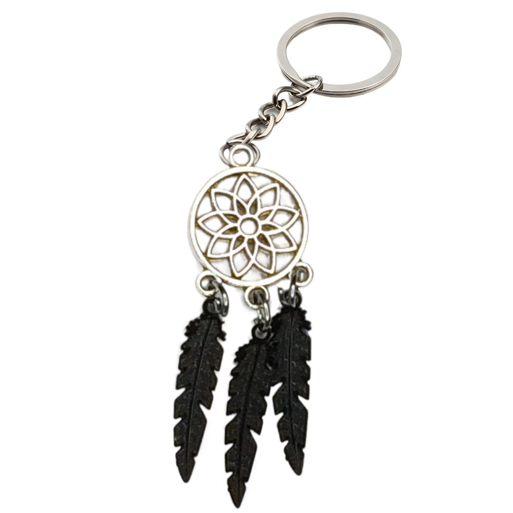 ****** 1 Par de Atrapasueños 30x15mm Color Plata + Plumas Medianas Etnicas Color Negro Llavero Plata Acero 12x1mm Acero Alta Durabilidad *****