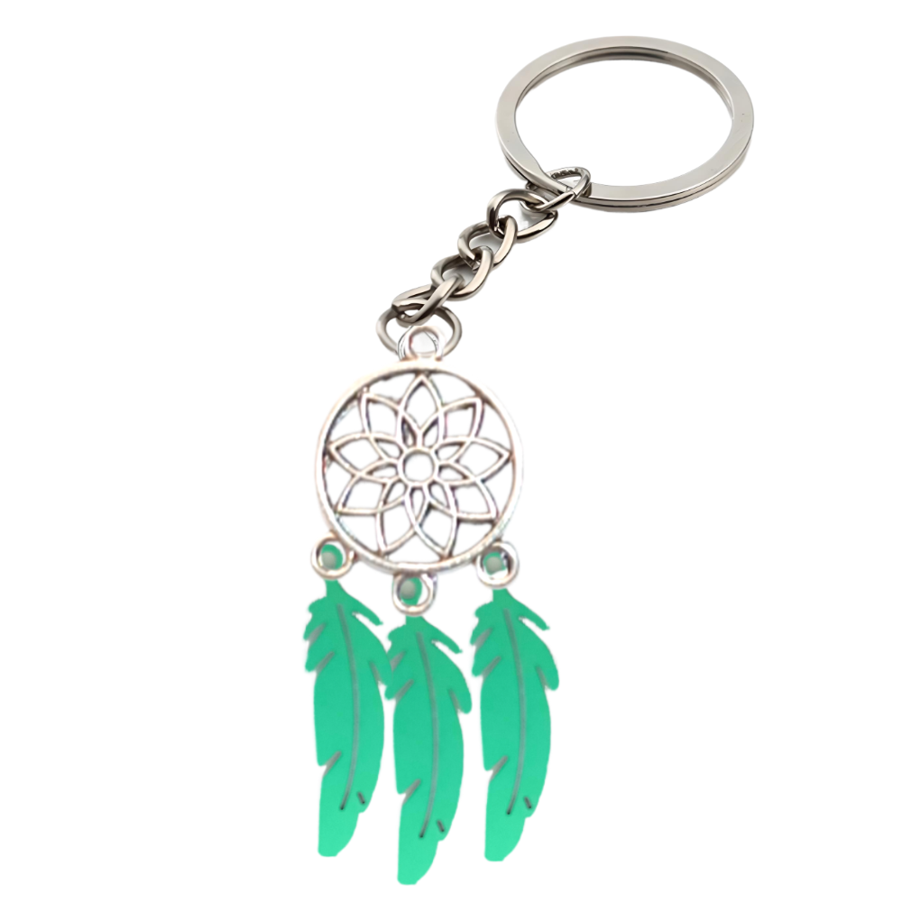 ******1 Par de Atrapasueños 30x15mm Color Plata + Plumas Acero Color Verde en Llavero Plata Acero 12x1mm Acero Alta Durabilidad *****