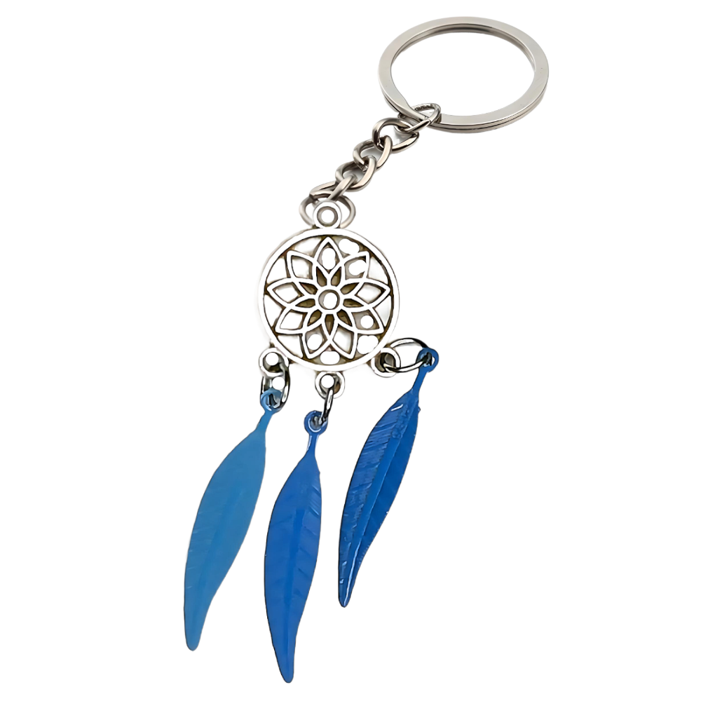 ******1 Par de Atrapasueños 30x15mm Color Plata + Plumas Acero Color Azul en Llavero Plata Acero 12x1mm Acero Alta Durabilidad *****