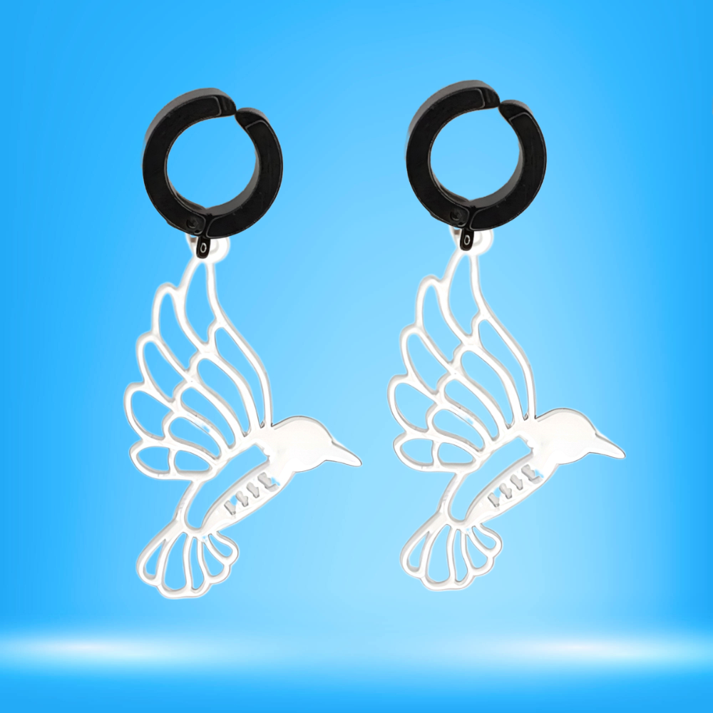 ******1 Par Colibries Grandes Color Pl,ata 35x30mm en Aretes Falsos / Arracadas Falsas Negras Acero 14x4mm Acero Alta Durabilidad *****