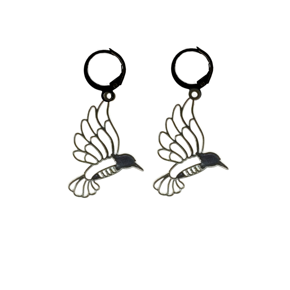 ******1 Par Colibries 3D 20x13mm en Arracaditas Negras Acero 12x1mm  Acero Alta Durabilidad  *****