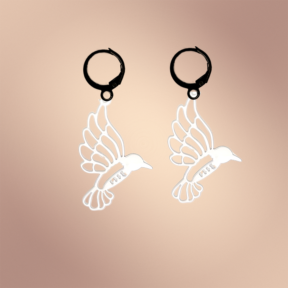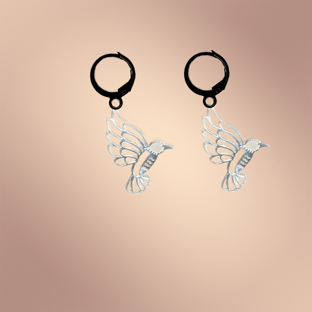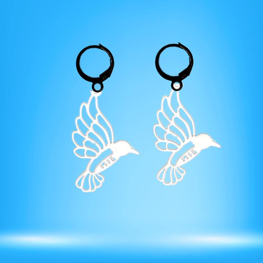 ******1 Par Colibries Grandes Color Blanco 35x30mm en Arracaditas Negras Acero 12x1mm  Acero Alta Durabilidad  *****