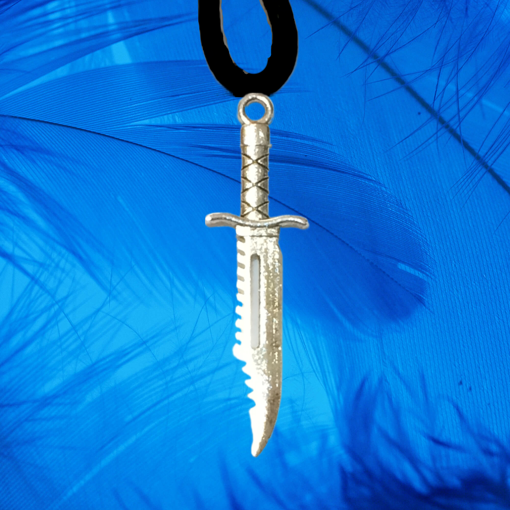 1 Collar Con Espada Tipo Cimitarra Dentada Color Plata 55 x25mm |