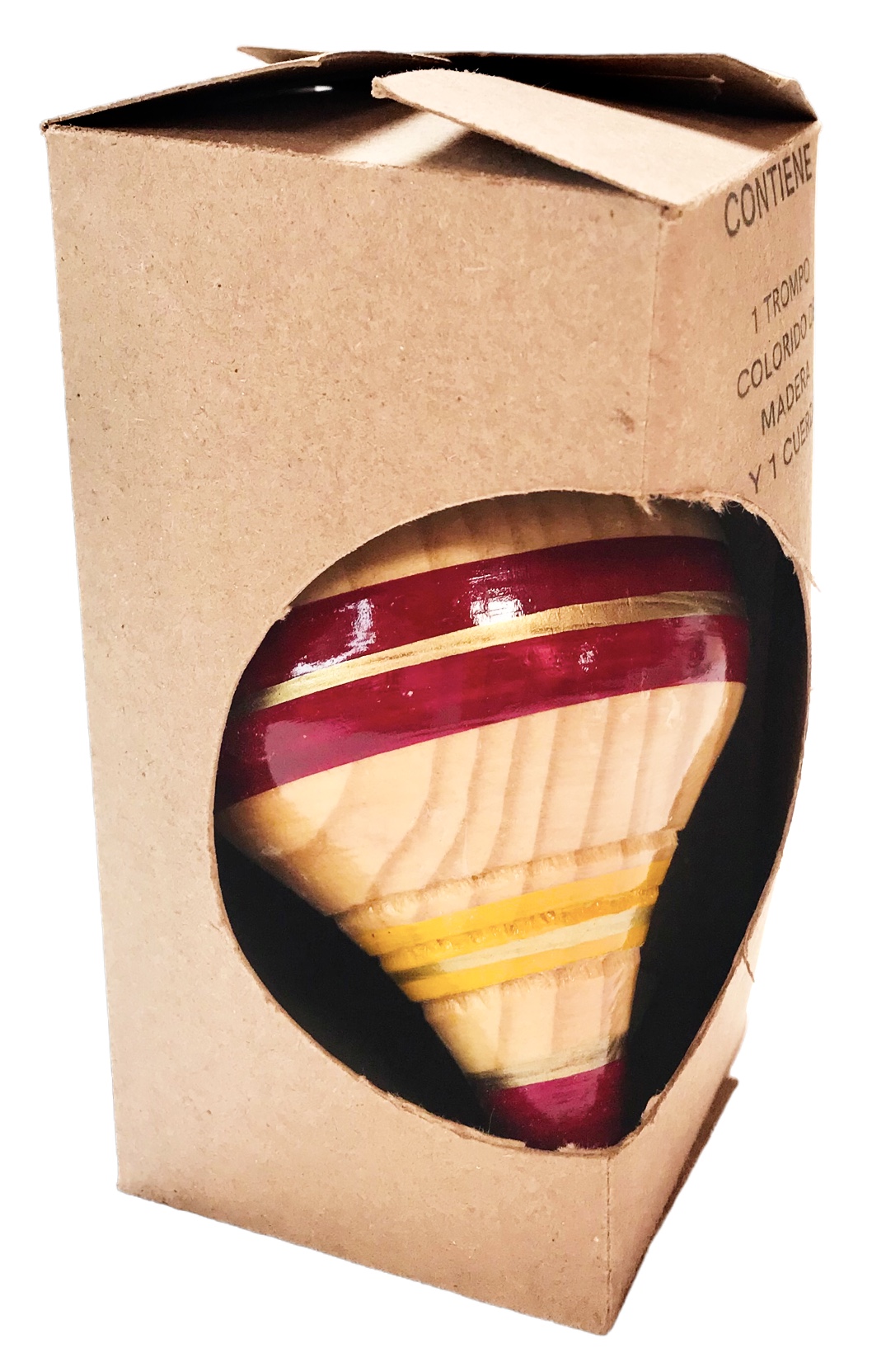 1 TROMPO ARTESANAL DE MADERA CON ALTURA OSCILANTE DE 9 A 11 CM.CUERDA INCLUIDA
