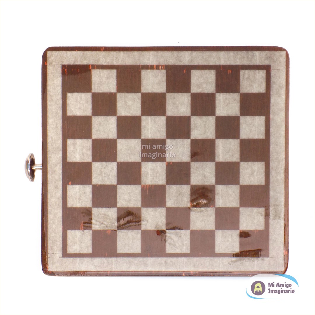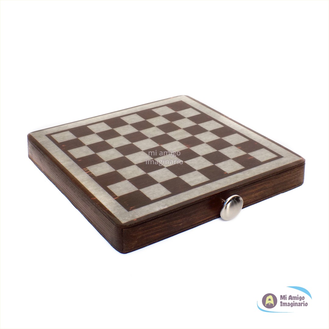 El tablero es de madera finamente barnizado. Mide 30 x 30.