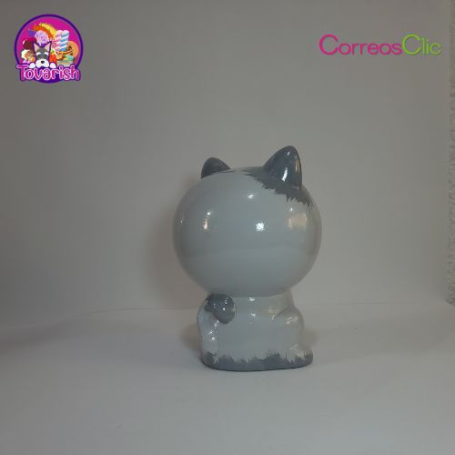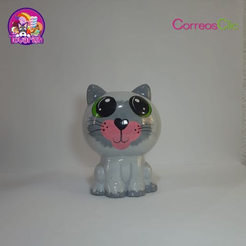 Para ese buen hábito del ahorro esta esta original alcancía en forma de Gato color gris, muy amplía y además decora de forma divertida tu hogar.