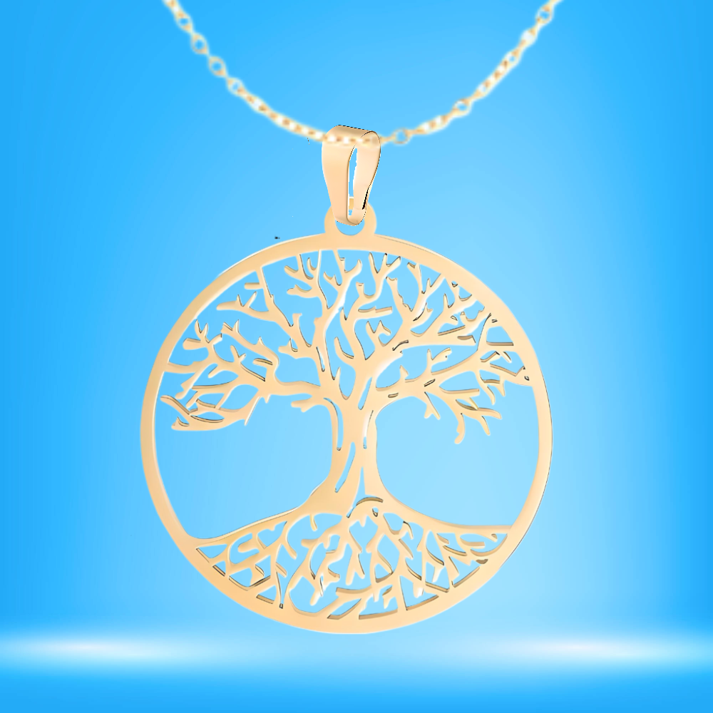 1 Cadena Acero Color Dorado con Dije de Arbol de la Vida Grande 35x35mm Acero Inoxidable Color Dorado