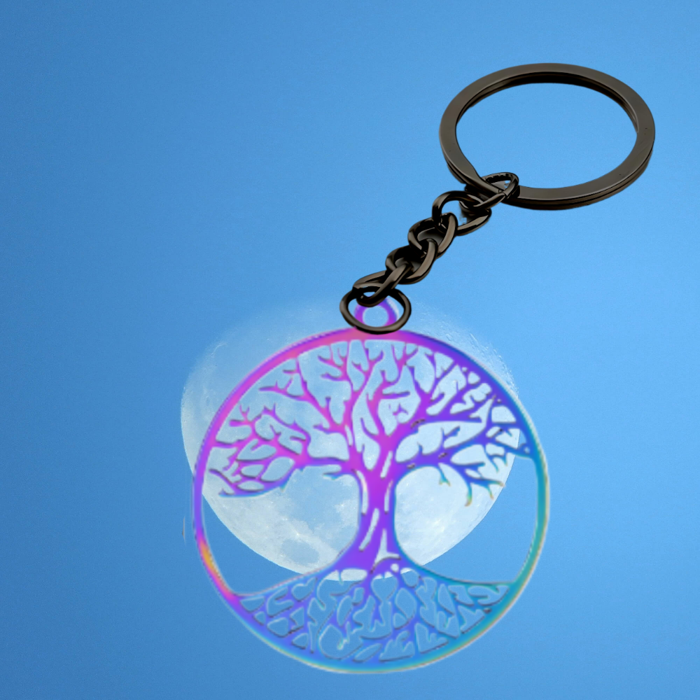 1 Llavero Negro con Dije de Arbol de la Vida Grande 35x35mm Acero Inoxidable Color Tornasol