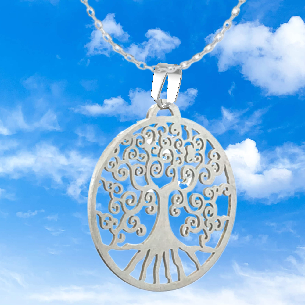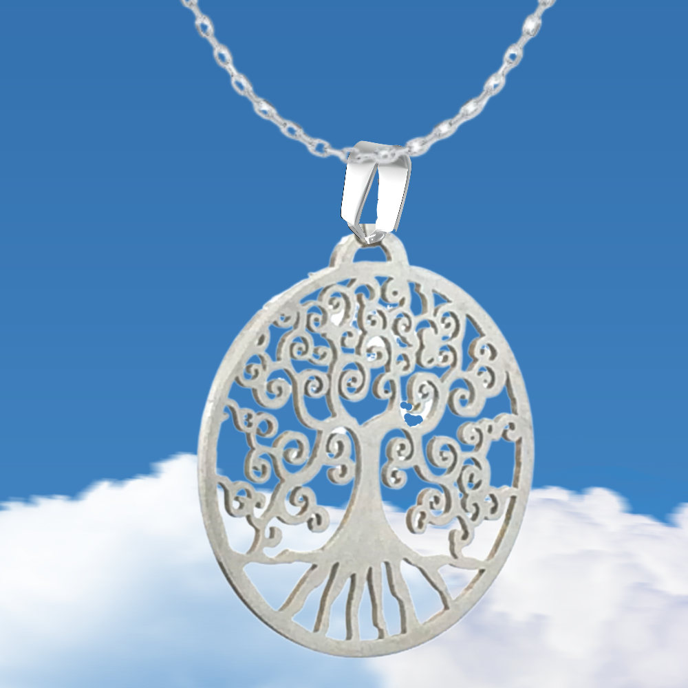 1 Cadena Acero Color Plata con Dije de Arbol de la Vida Grande 35x35mm Acero Inoxidable Color Plata