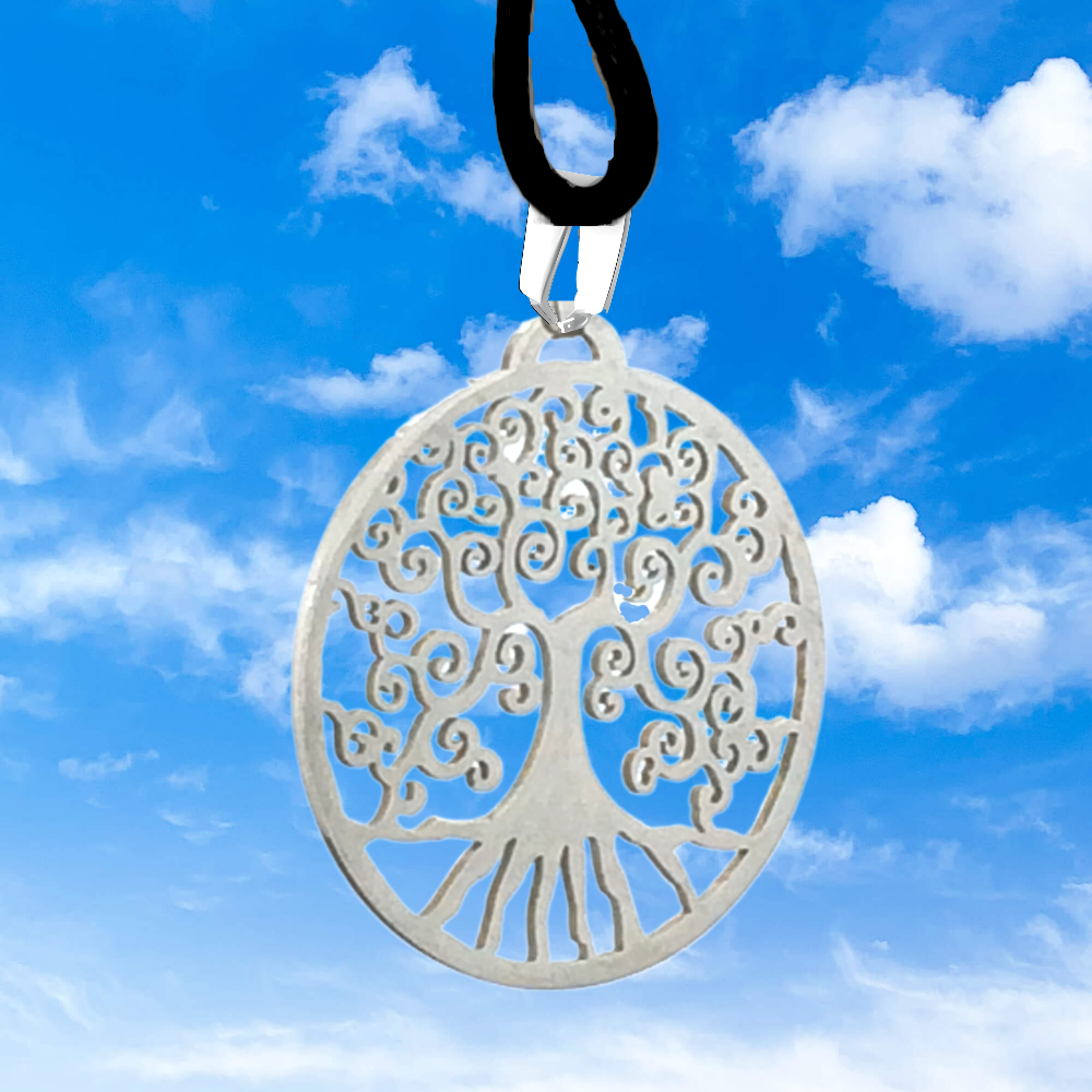 1 Collar Piel Color Plata con Dije de Arbol de la Vida Grande 35x35mm Acero Inoxidable Color Plata
