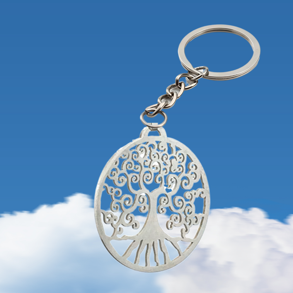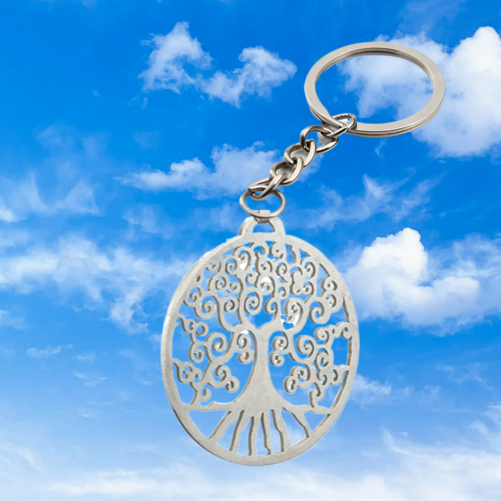 1 Llavero Color Plata con Dije de Arbol de la Vida Grande 35x35mm Acero Inoxidable Color Plata