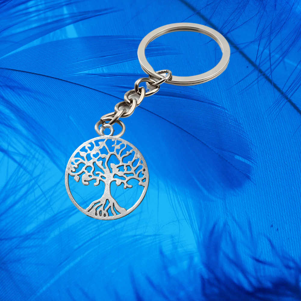 1 Llavero Color Plata con Dije de Arbol de la Vida Mediano 25x25mm Acero Inoxidable Color Plata