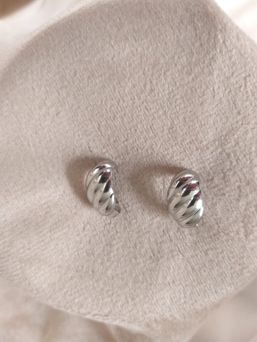 Arete en forma de Croissant Mini en color plata hecho de Acero Inoxidable
