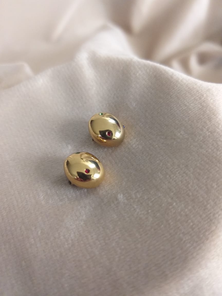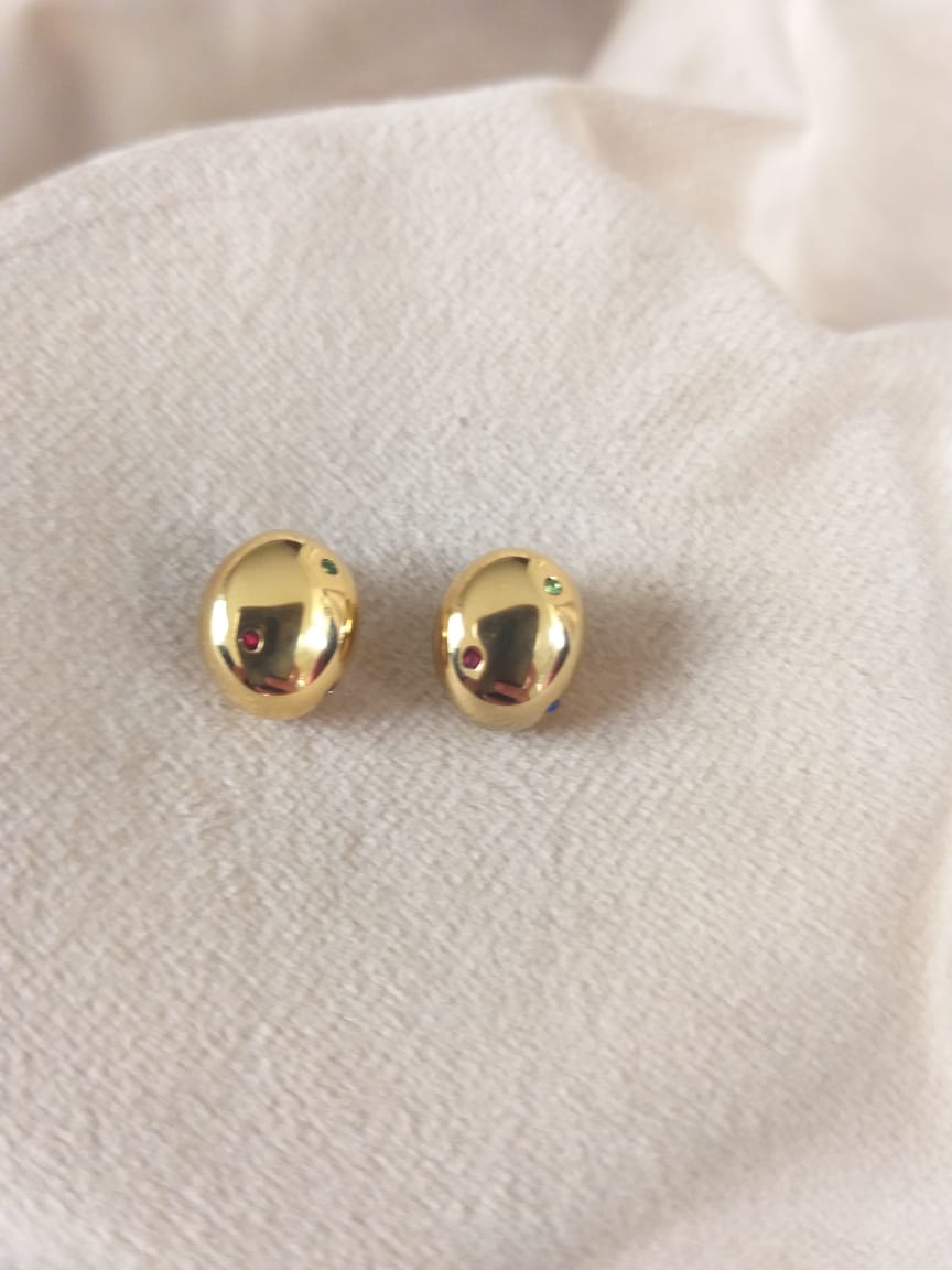 Arete en forma de ovalo irregular con pequeñas piedras de colores