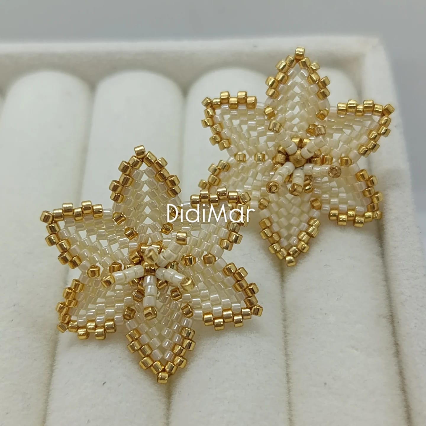 Aretes tejidos a mano en cristal calibrado de la marca Miyuki. Poste de acero inoxidable.