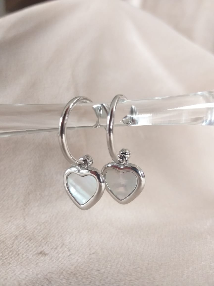 Arracada Corazón Nacar color Plata