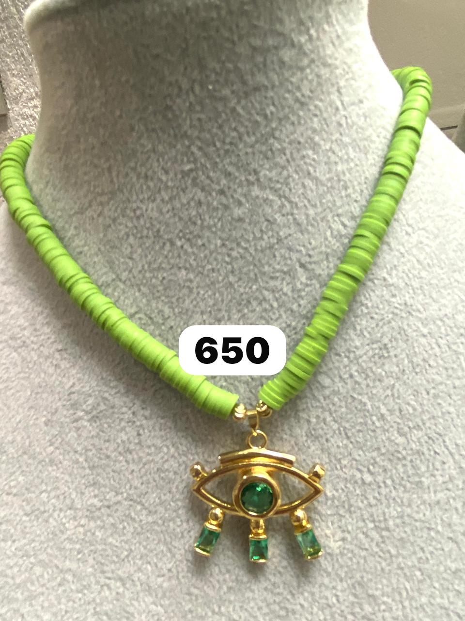 Audy Joyas Collar con piedras verde con dije de Ojo