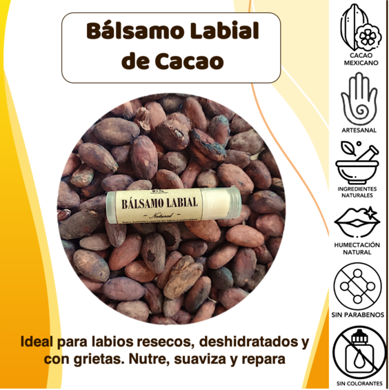 BÁLSAMO LABIAL ARTESANAL DE CACAO. Ideal para labios resecos, deshidratados y con grietas. Ayuda a humectar, nutrir, proteger y suavizar a profundidad dejando una delicada capa cremosa con sensación muy refrescante en la piel y con un intenso sabor de menta, también contiene vitamina E que ayudará a mantener tus labios suaves, sanos y bonitos.