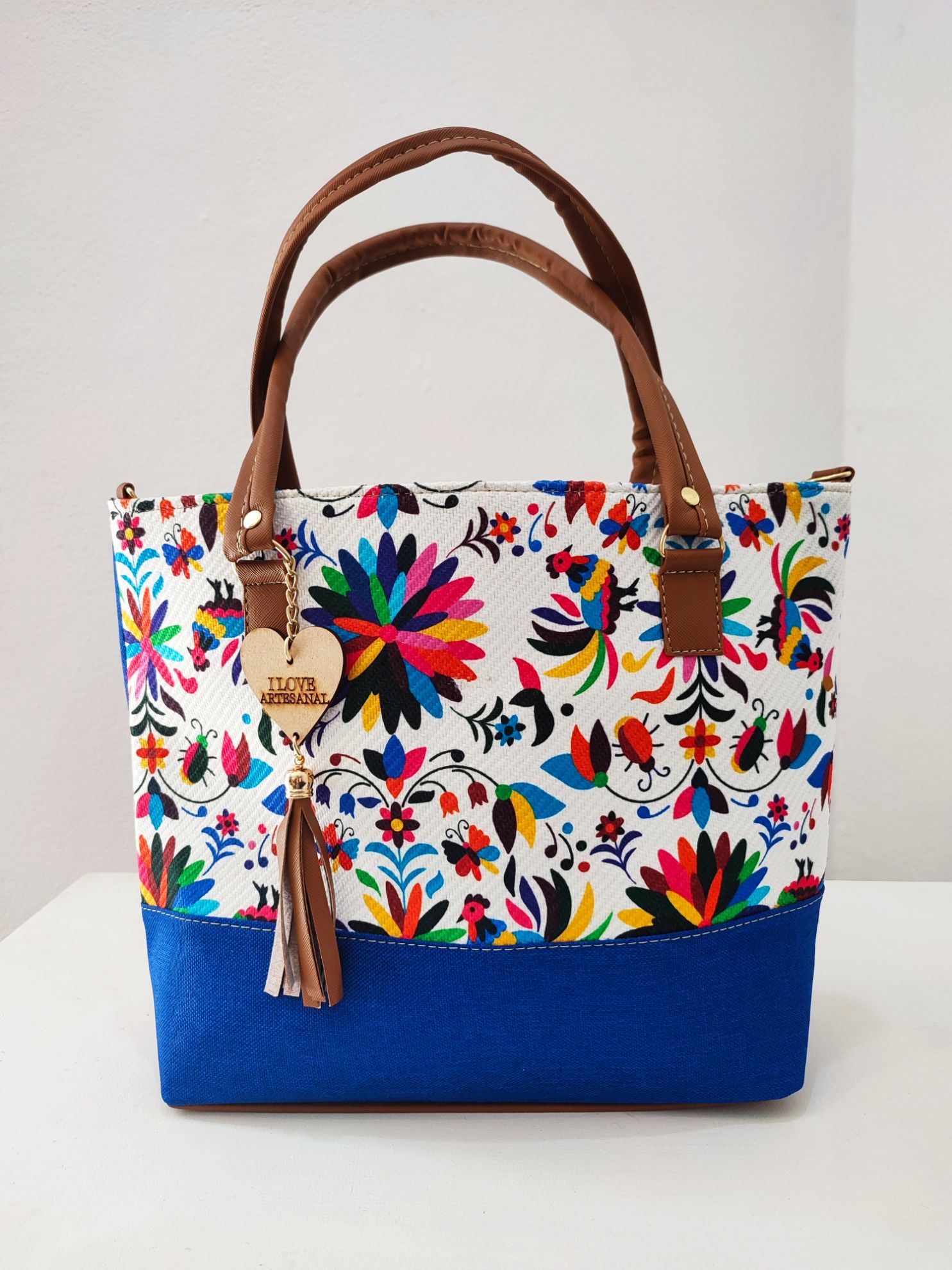Bolso elaborado en material de Yute, tejida con diferentes colores, con asas de vinipiel. Cuenta con correa para vestir al hombro.
