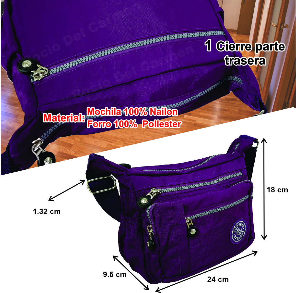 Aspecto elegante y versátil color violeta de 5 cierres para que guardes todo lo que necesites.