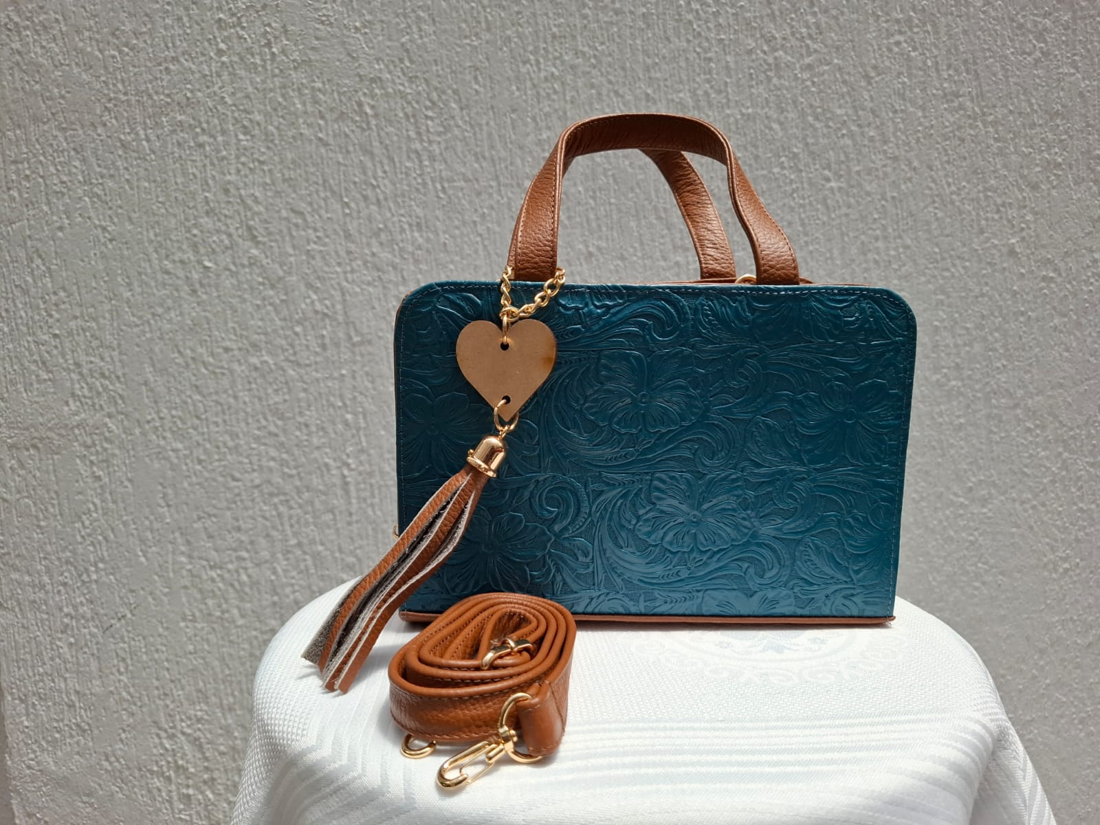 Bolsa Juvenil Color Azul. Piel Cincelada