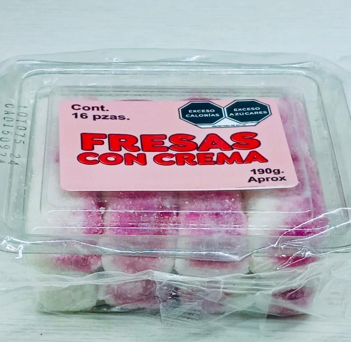 Dulce tradicional mexicano de textura suave espolvoreado con azúcar y un pequeño toque sabor a FRESAS CON CREMA. Cada empaque contiene 16 dulces.