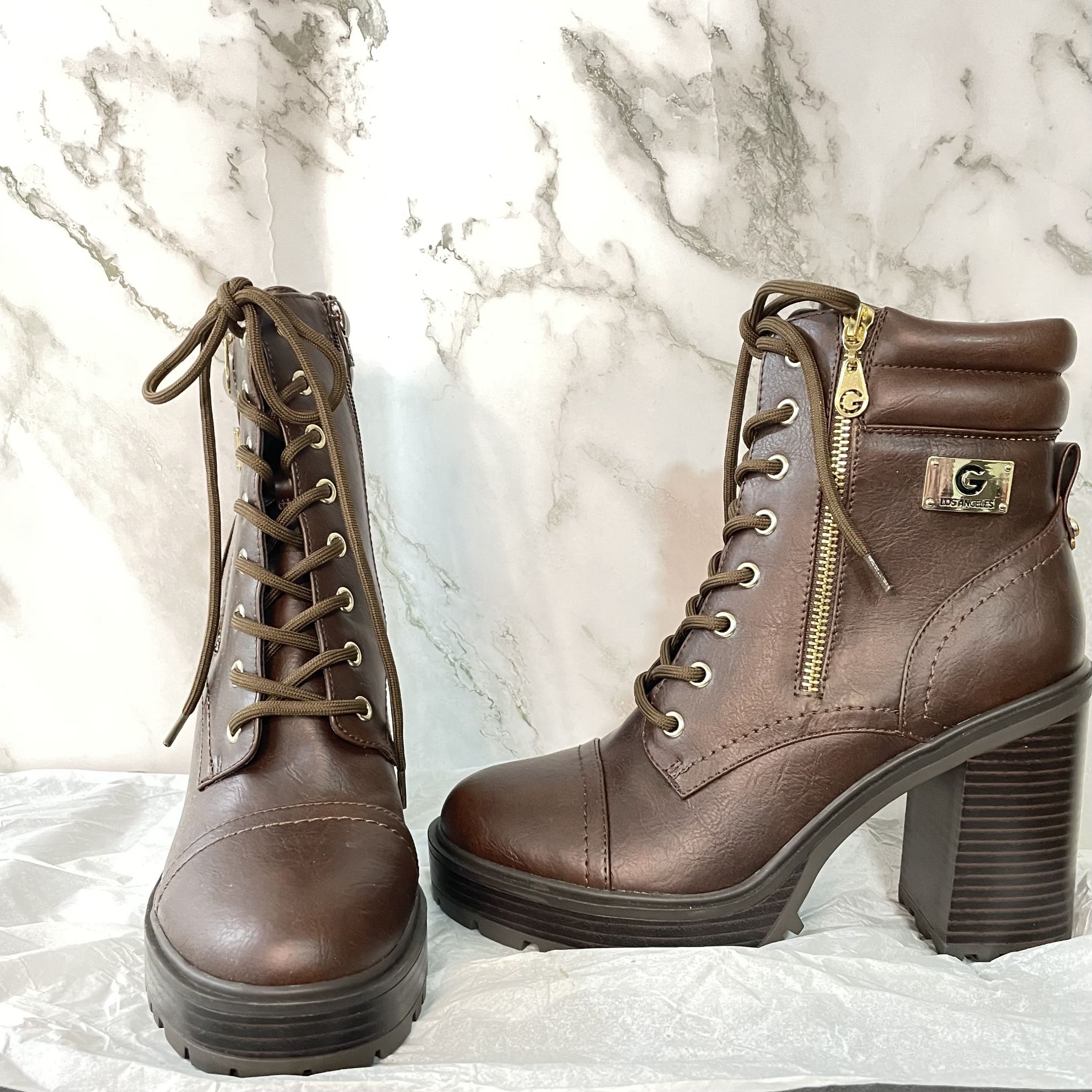 Botín Marca:Los Angeles G By GUESS Color: DARK BROWN Talla: 5.5 , Estilo: BOTA CON TACON