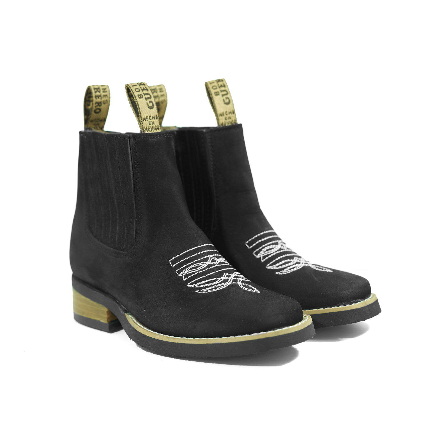 Los botines vaqueros para niños, confeccionados con 100% piel, ofrecen un diseño atemporal que se adapta a cualquier ocasión, ya sea un día casual o una ocasión especial, convirtiéndolos en el complemento perfecto. Su puntera redondeada, empeine estándar y amplitud extra en la parte frontal garantizan un confort excepcional, mientras que los clásicos elásticos laterales proporcionan un ajuste óptimo. Destacan por su calidad, comodidad y durabilidad inigualables, siendo una opción ideal para los pequeños.