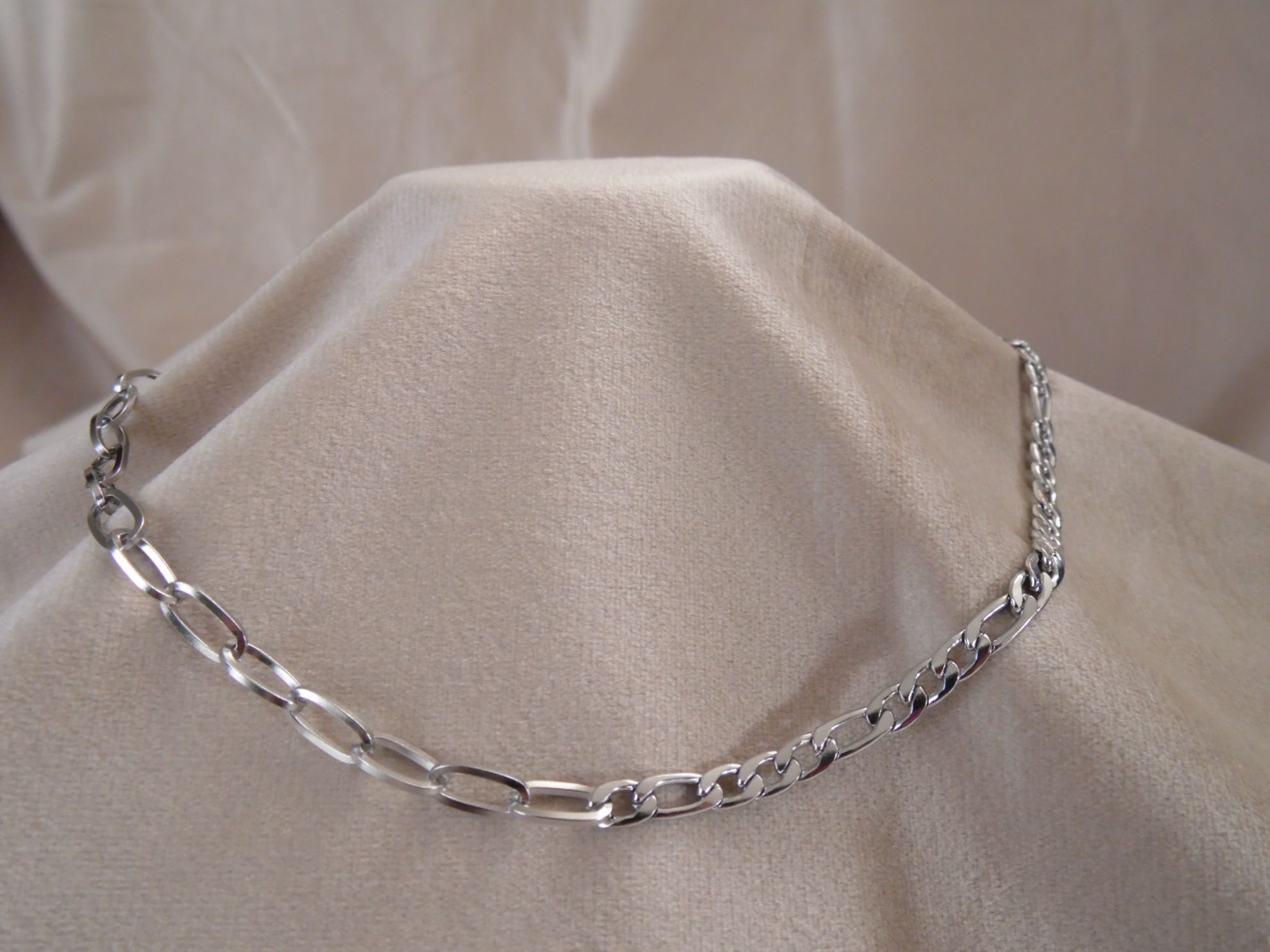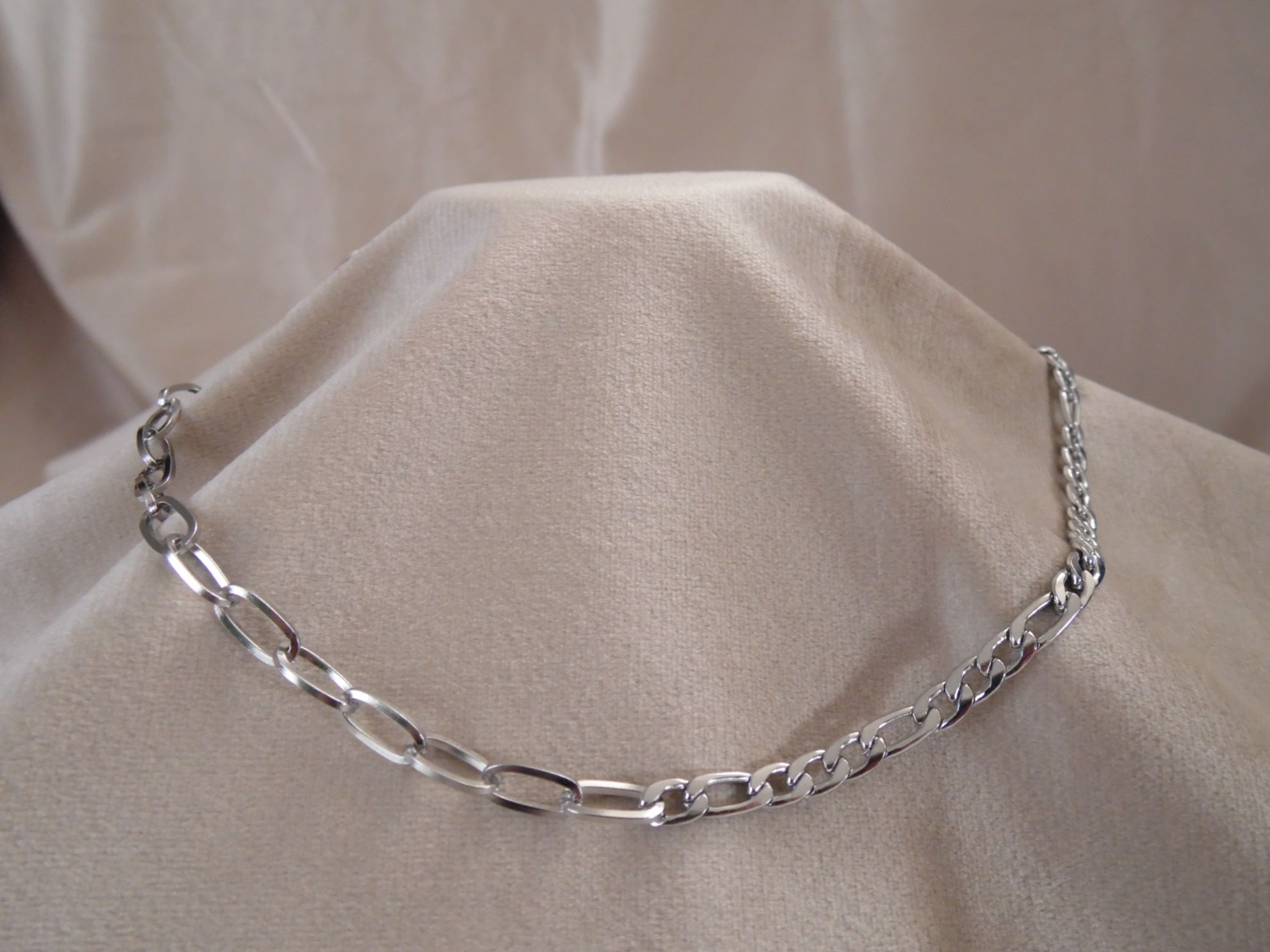 Cadena de eslabones combinada en color plata hecha de Acero Inoxidable
