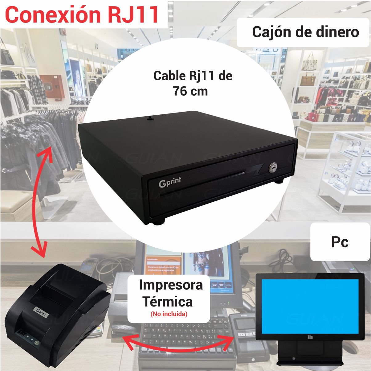 La seguridad es primordial, y por ello este cajón incluye un sistema de cierre con llave que permite un control restrictivo del acceso al efectivo. El tipo de conector RJ-11 garantiza una integración sencilla con la mayoría de impresoras de recibos y sistemas de punto de venta, permitiendo una apertura automática del cajón al procesar una venta.