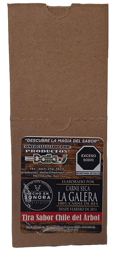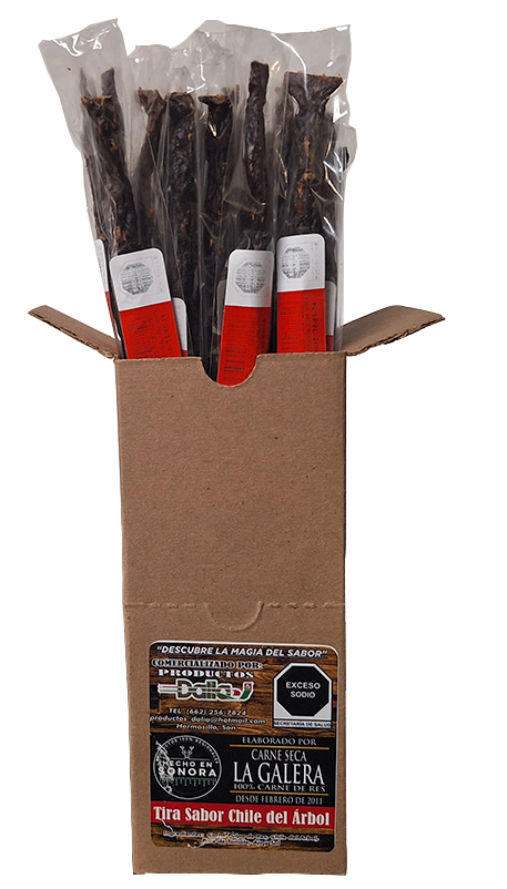 Carne seca en stick's en bote sin empaqueado individual o caja con empaquetado individual cuenta con 280gr aprox. y/o contiene 40 stick (tirita o barita).
